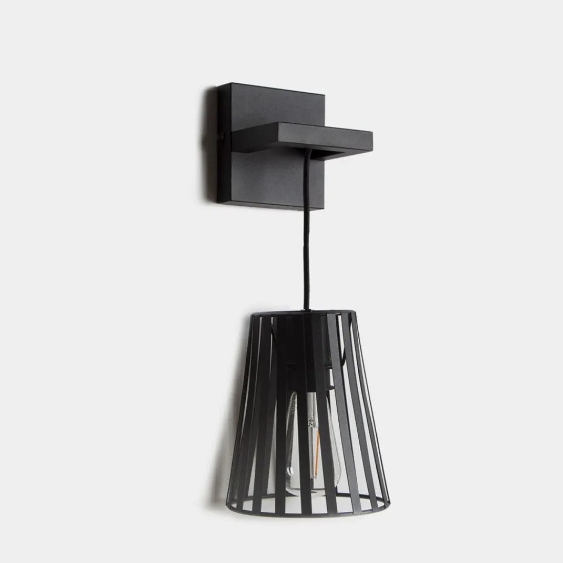 El aplique de pared Ico tiene un diseño industrial elegante que otorgará a tus estancias una estética muy depurada. Fabricado en metal y de color negro, esta luminaria es muy decorativa y se integra perfectamente en cualquier tipo de ambiente.No incluye bombilla.