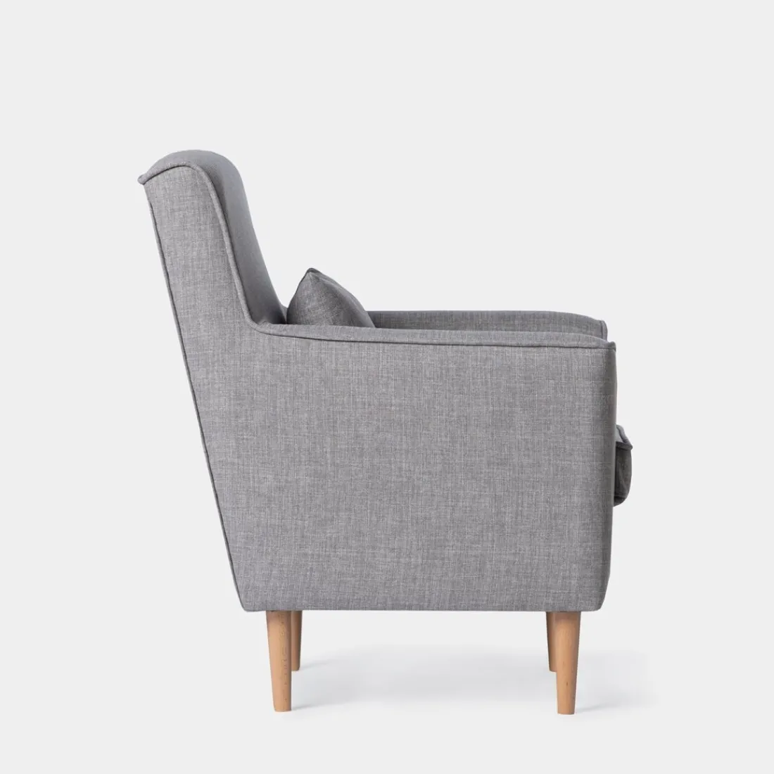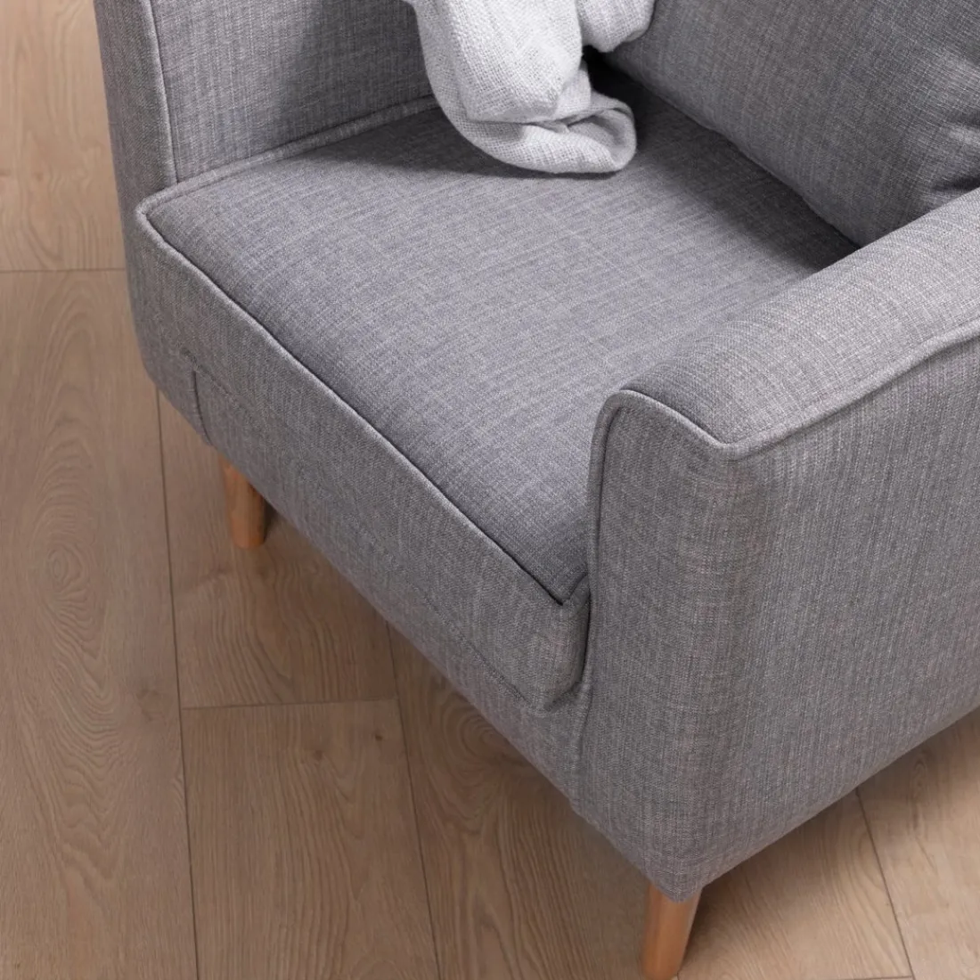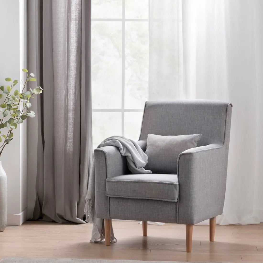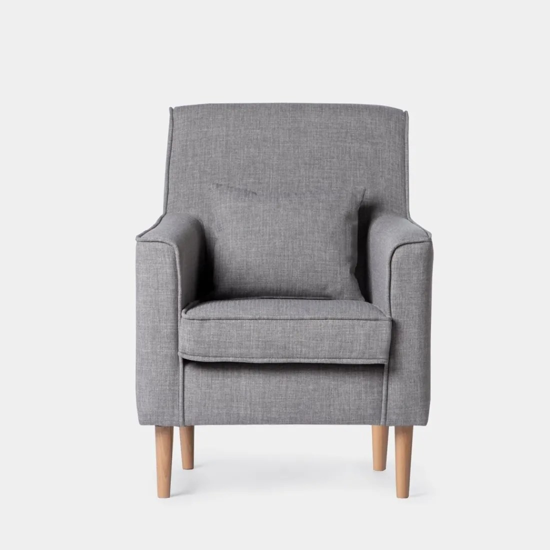 La butaca de lectura Naia en color gris es ideal para completar cualquier salón, dormitorio o recibidor. Incluye un cojín desenfundable a juego con el tapizado de la butaca que le aporta mayor confort y comodidad a la zona lumbar. Está disponible en tres colores diferentes para que puedas escoger el que mejor se ajuste a tus gustos y necesidades.