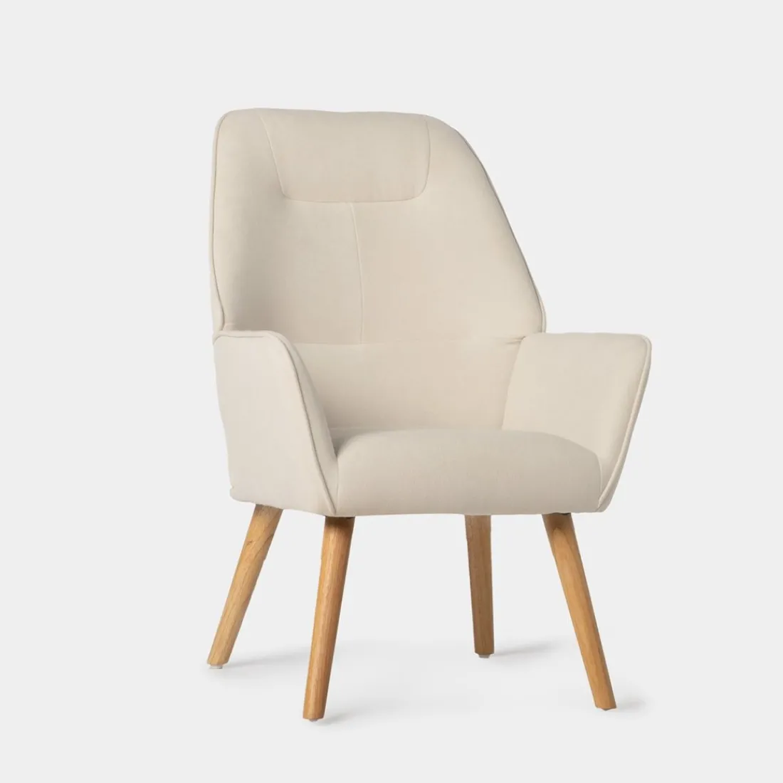 La butaca de lectura Valery tapizada en color beige encaja en cualquier salón, dormitorio o recibidor. Tiene un respaldo alto y unos mullidos reposabrazos que hacen que sea muy cómoda y confortable. Está disponible en diferentes tapizados para que puedas escoger el que mejor encaje con tu estilo.