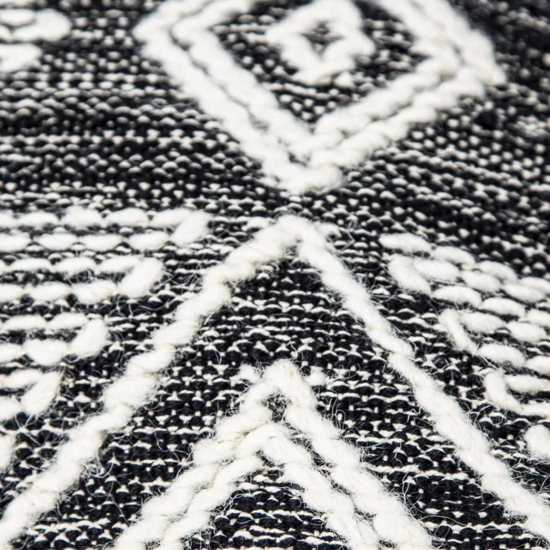 El cojín para sofá Kude dará un toque de naturalidad a tu decoración gracias a su tejido bordado con motivos estampados en blanco y negro. Este cojín será tan popular en una decoración de estilo étnico como en una decoración de estilo escandinavo. Te aconsejamos combinar la colección de cojines Kude en sus dos tamaños y crear una confortable composición en tu sofá. Incluye funda y relleno.