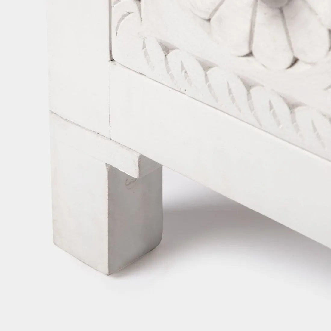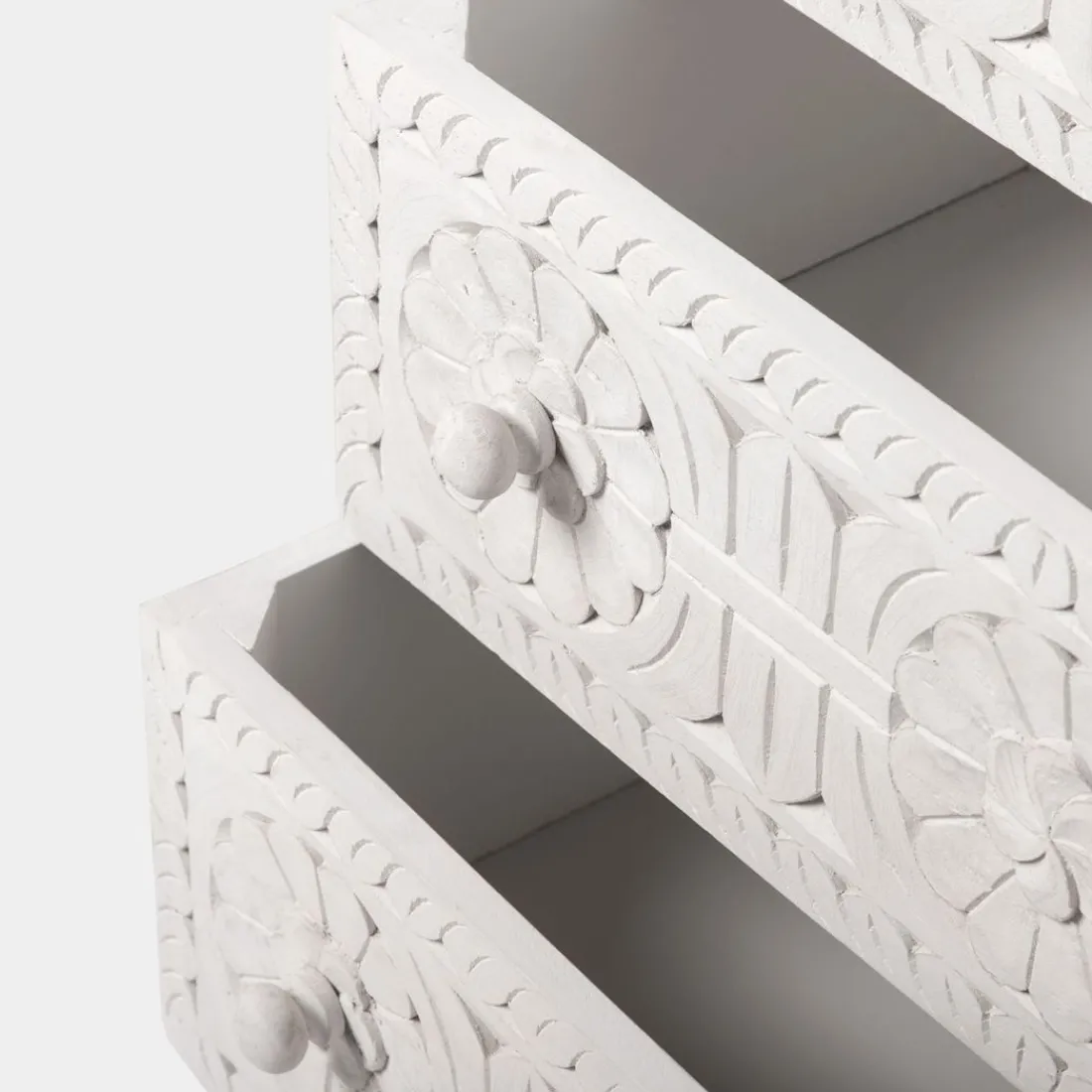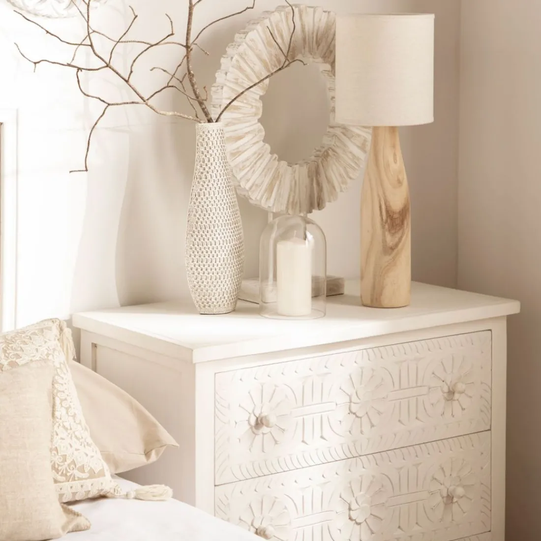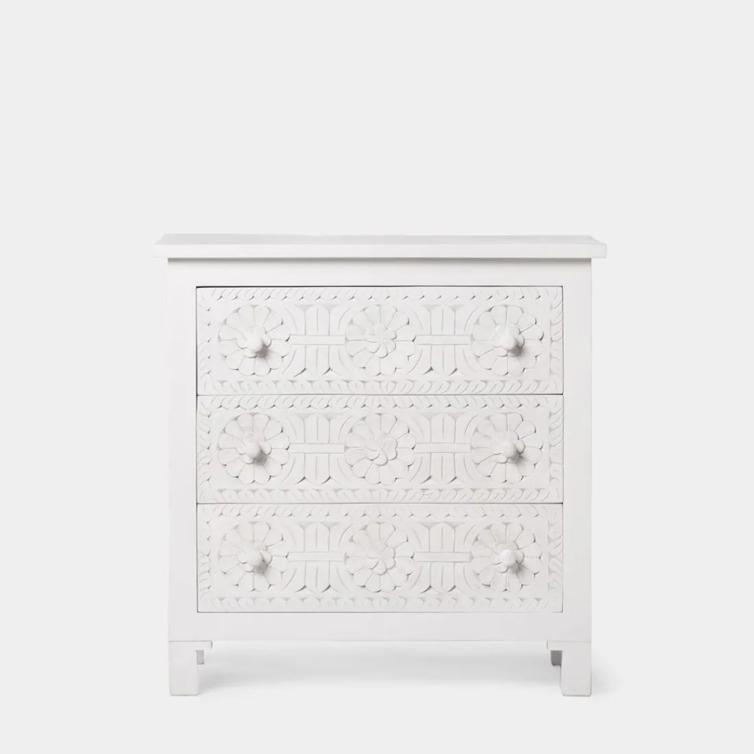 La cómoda en blanco vintage Iraya aportará estilo y personalidad a tu dormitorio. Sus tres cajones de gran capacidad te ayudarán a organizar y almacenar todas tus pertenencias. Para mayor estabilidad del mueble, aconsejamos su anclaje a la pared. Combínalo con el resto de la colección y consigue el look completo.