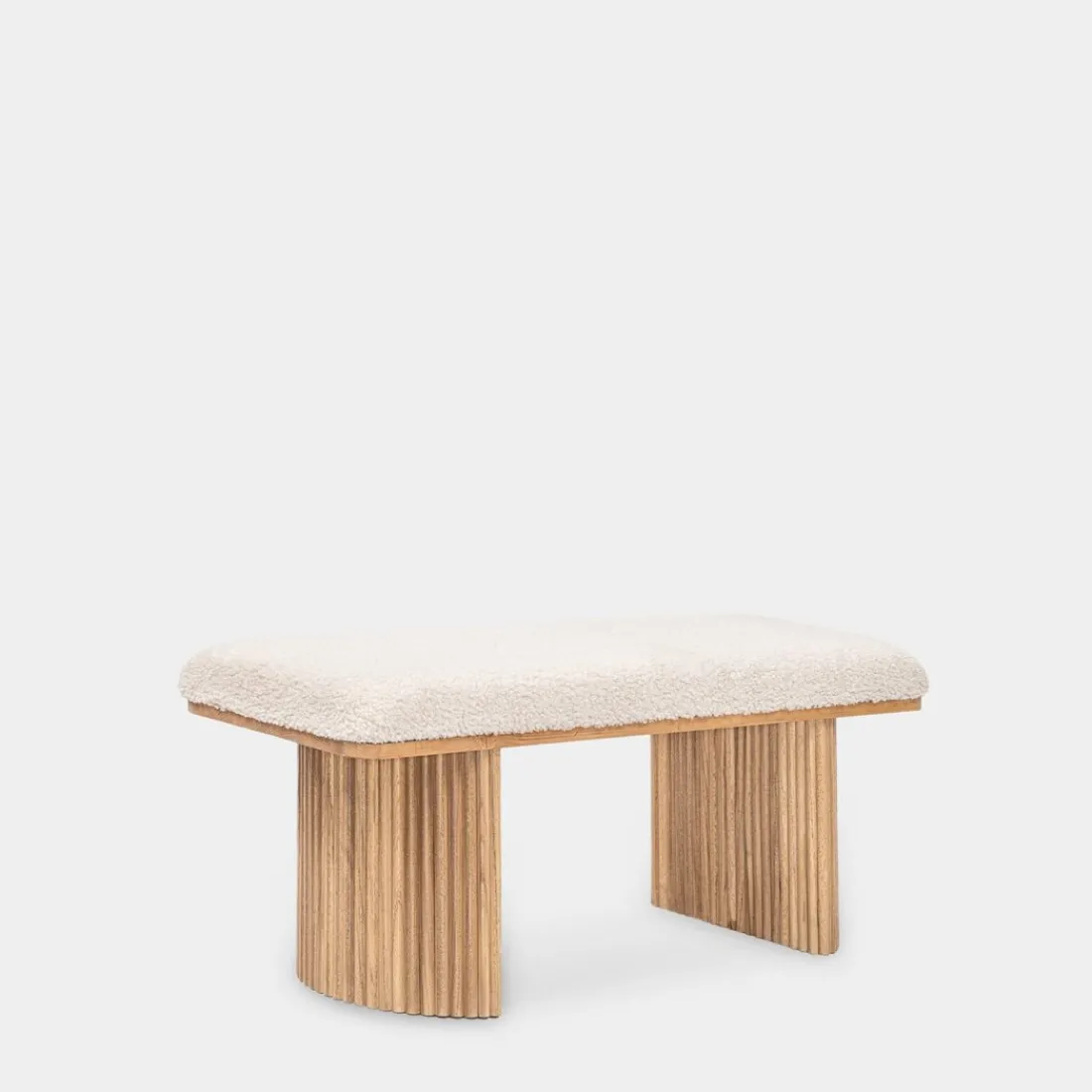 El banco Bruna, fabricado en madera de paulownia y tapizado en borreguito blanco, es ideal para quienes buscan añadir calidez y estilo a su hogar. La madera de paulownia, conocida por ser ligera pero resistente, aporta un toque natural y orgánico, mientras que el tapizado en borreguito blanco añade suavidad y textura, creando una pieza que invita al descanso. Su diseño compacto y versátil lo hace perfecto para usar como asiento adicional en la sala de estar, al pie de la cama en el dormitorio o incluso en un recibidor.