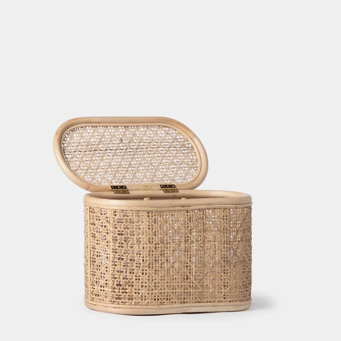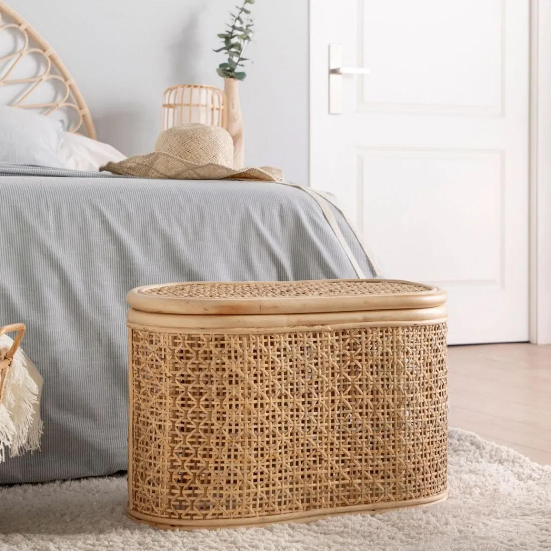 Con el baúl de ratán natural Sima conseguirás ampliar la capaciad de almacenaje de tu hogar a la vez que aportas un toque natural a la decoración. Puedes utilizarlo en el comedor, dormitorio o incluso baño para almacenar todo aquello que no quieras que esté a la vista. Debido a su fabricación artesanal, puede presentar irregularidades y pequeñas variaciones en su color.