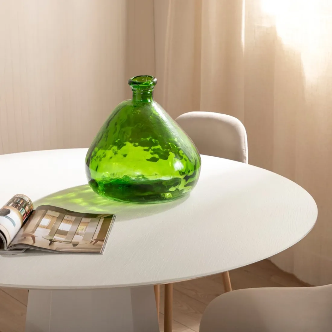 El jarrón de vidrio reciclado Bezo le dará el toque de estilo que le falta a tu hogar. Está fabricado a mano con vidrio grueso de alta calidad. El vidrio aportará el aire fresco que buscas. Combínalo con más jarrones de Klast y crea la composición perfecta.