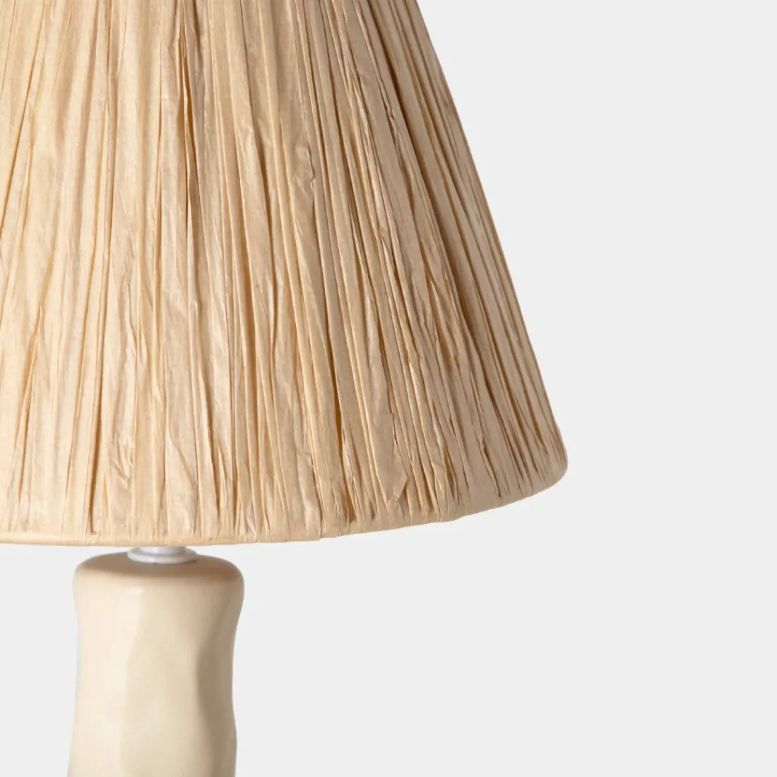 La lámpara de mesa Daisu es el complemento perfecto para aquellos que busquen elegancia y calidez. Su base de cerámica presenta un acabado sofisticado que complementa una amplia variedad de estilos decorativos. La pantalla, elaborada en fibra natural emite una luz suave y acogedora. No incluye bombilla.