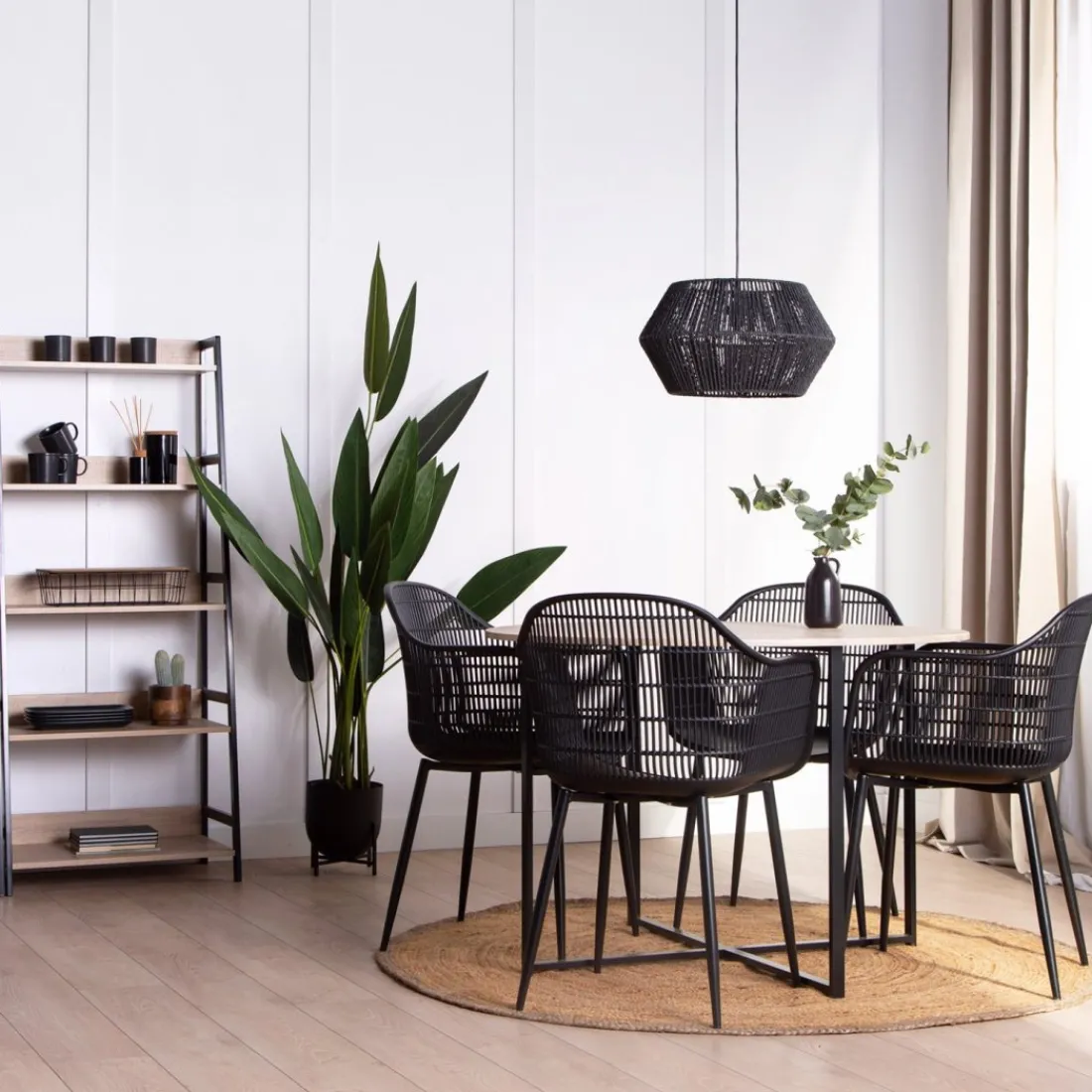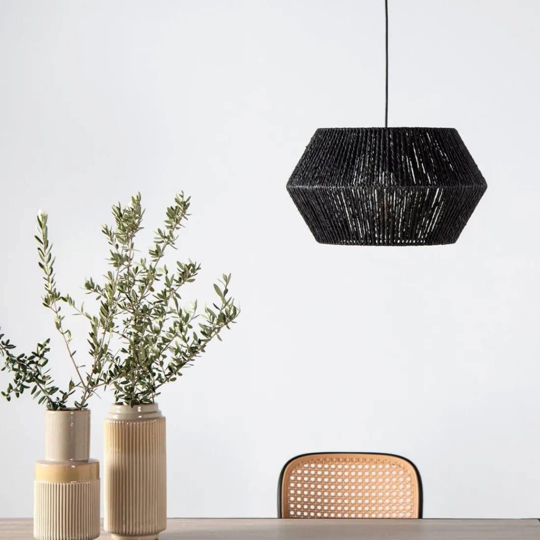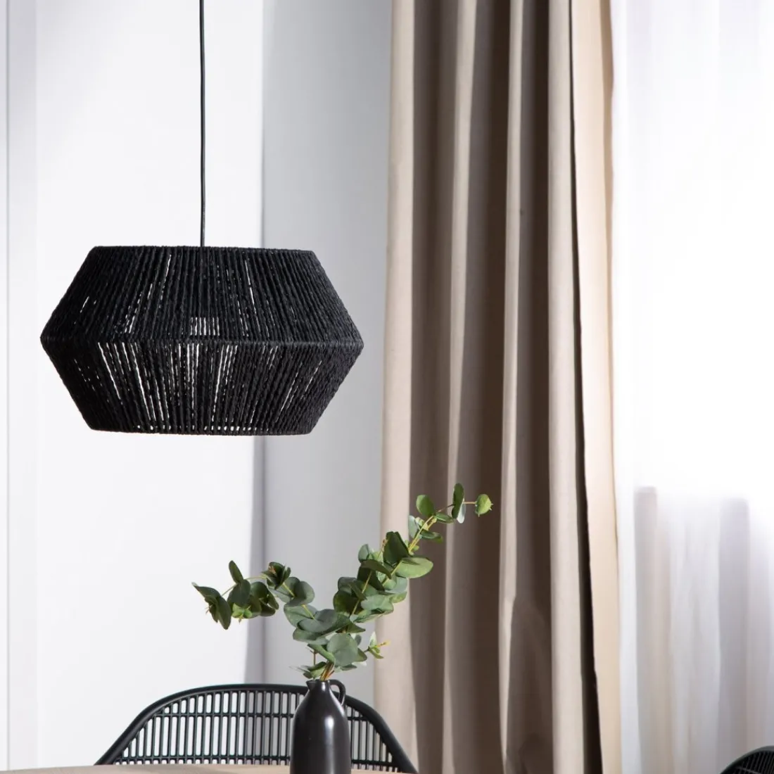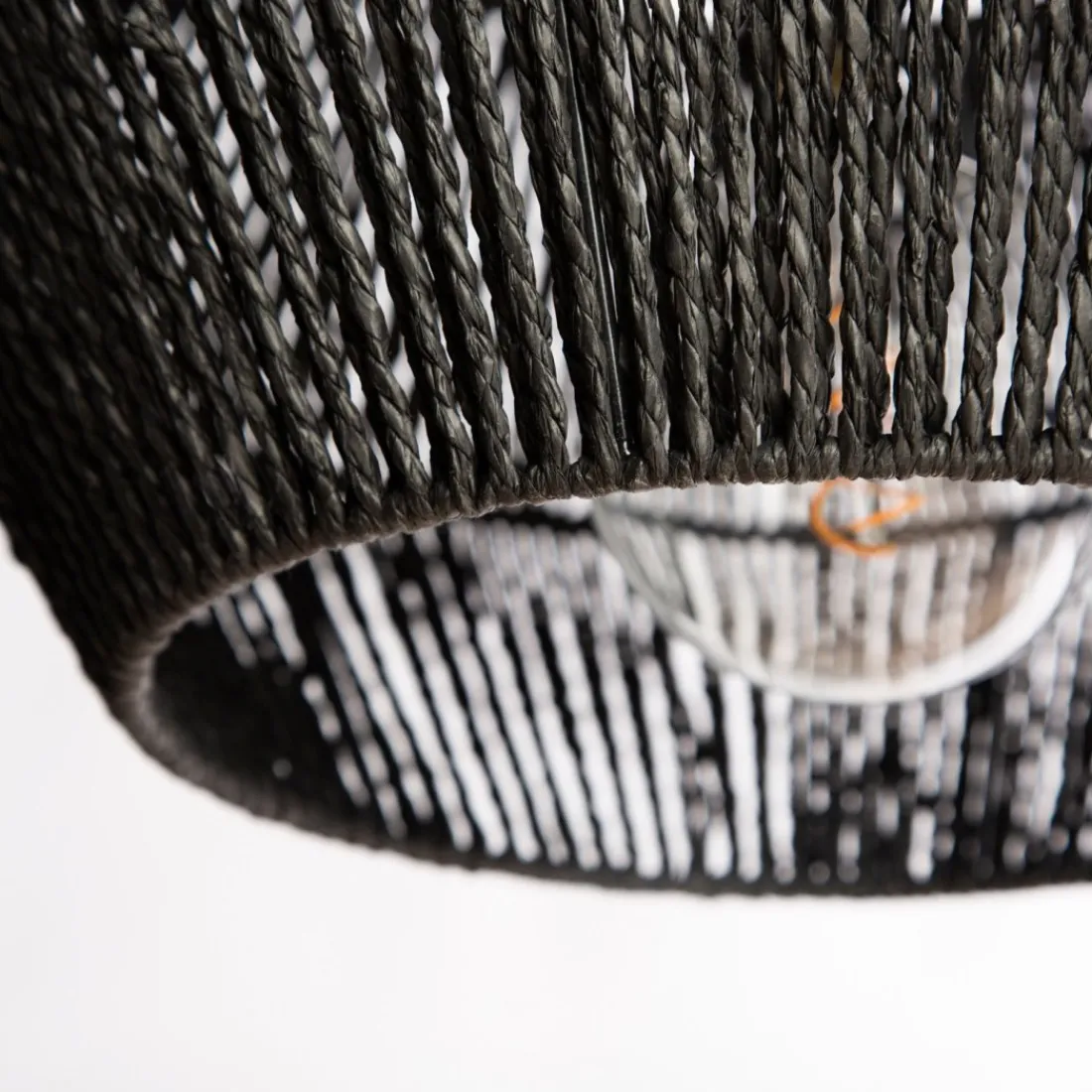 La lámpara de techo Black, fabricada en cuerda, transmite un estilo natural y sofisticado a la vez. Podrás decorar cualquier estancia de tu hogar con ella ya que el color negro combina con todo. Su forma redondeada es perfecta para añadir un toque distinto.No incluye bombilla.