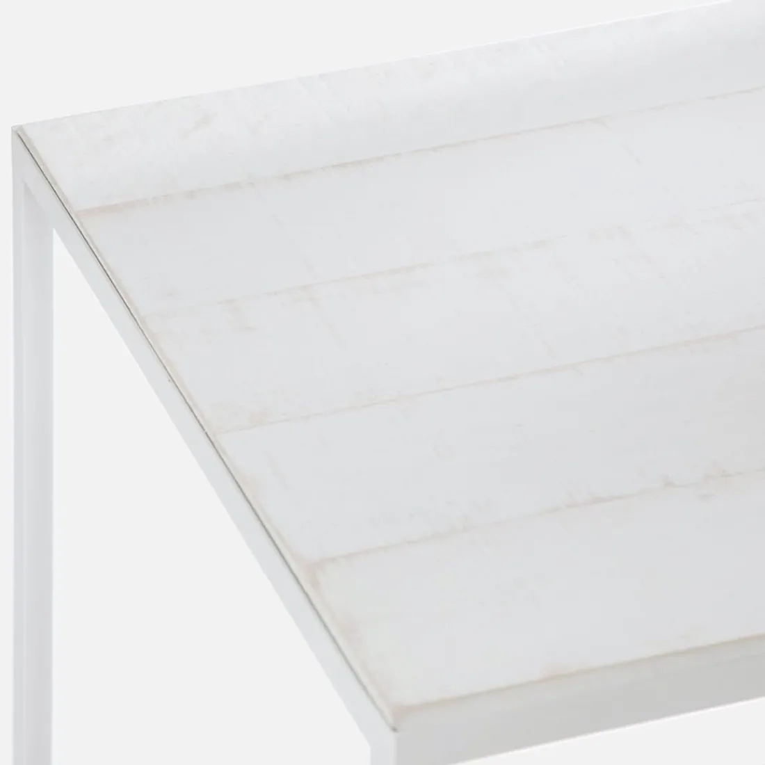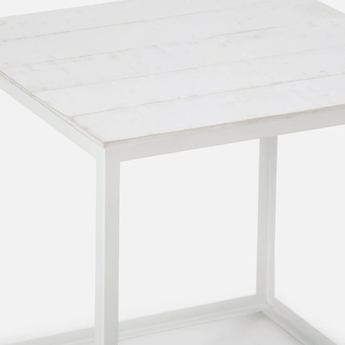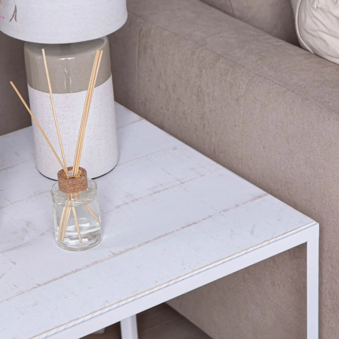 La mesa auxiliar Brena es la mejor opción para tu sala de estar si el estilo que te gusta es el industrial. Su madera blanqueada en el sobre y su estructura metálica blanca la hacen muy versátil a nivel decorativo ya que también combina muy bien con la decoración natural. Es una pieza multifuncional, ya que la puedes colocar también como mesita de noche en el dormitorio. Es un diseño propio crado por el equipo de Klast Home, sostenible, que se convertirá en el protagonista de tu sala de estar.