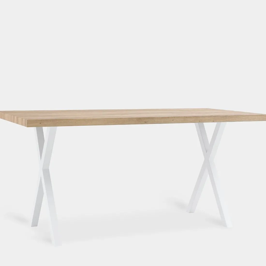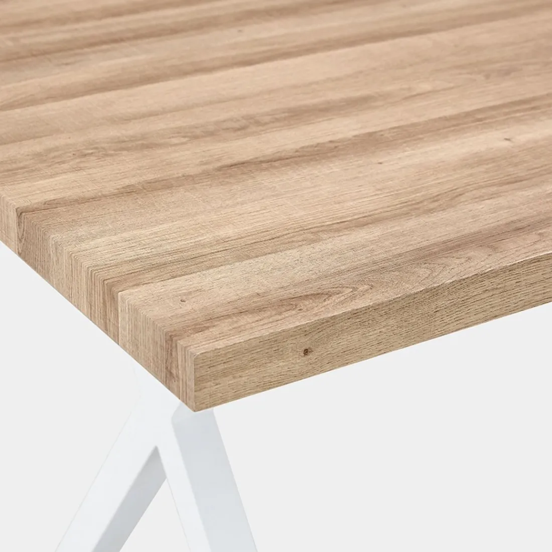 Potencia tu salón con la elegancia de la mesa de comedor rectangular Parks. Con su sobre de acabado natural y sus patas metálicas blancas en forma de cruz, añade un toque contemporáneo y de moda a cualquier entorno. Con capacidad para 6 comensales, es la opción ideal para compartir momentos memorables con tus seres queridos. Su estilo atemporal la convierte en el complemento perfecto para tu salón comedor, cocina o incluso como mesa de reuniones en tu espacio de trabajo.