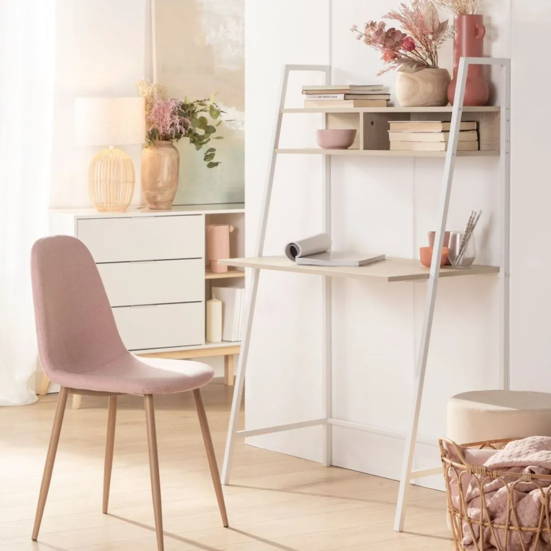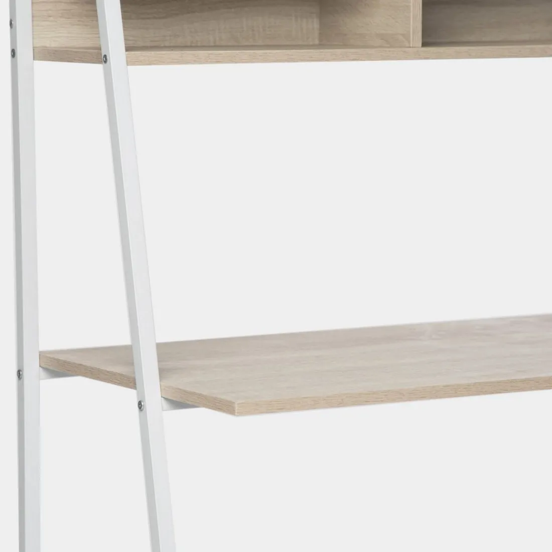 Apuesta por el escritorio Clerk en acabado natural y estructura blanca. Su estante superior lo hace muy funcional y estético. Te permite almacenar de una forma ordenada aquello que necesites o incluso poner accesorios decorativos para darle el toque deco que necesitas. Con inspiración industrial esta mesa de estudio y/o trabajo será la pieza que necesitas en tu oficina o dormitorio.