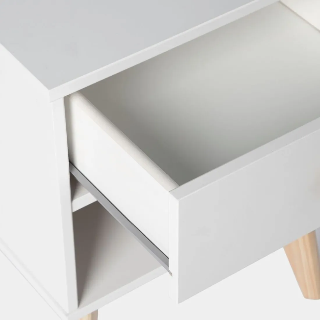 La mesita de noche lacada en blanco Luke de estilo nórdico encaja en cualquier dormitorio. Cuenta con un cajón de almacenaje y con un estante inferior en el que podrás dejar todo lo que quieras tener a mano. Está disponible en varios acabados, escoge el que más te guste.