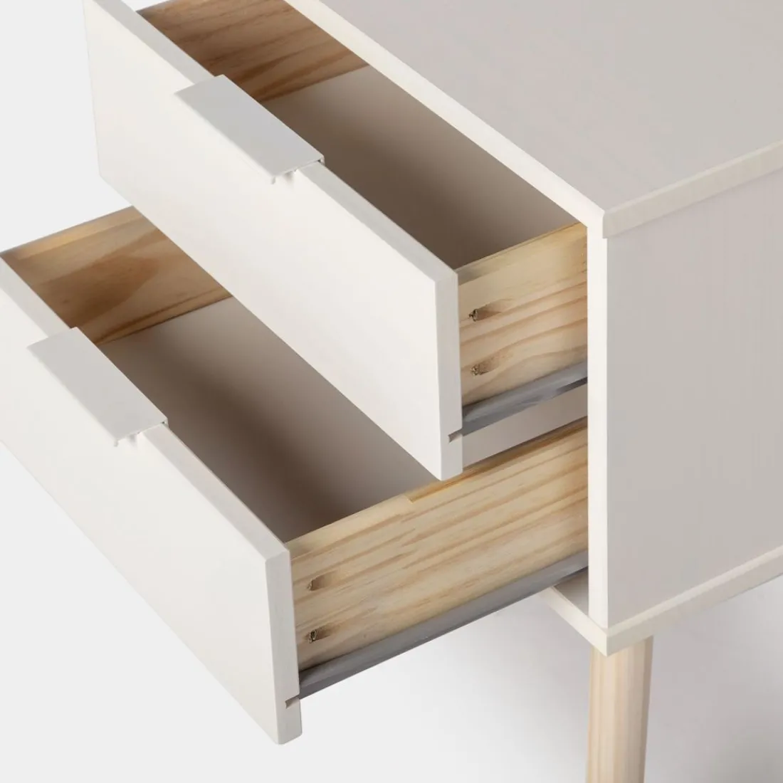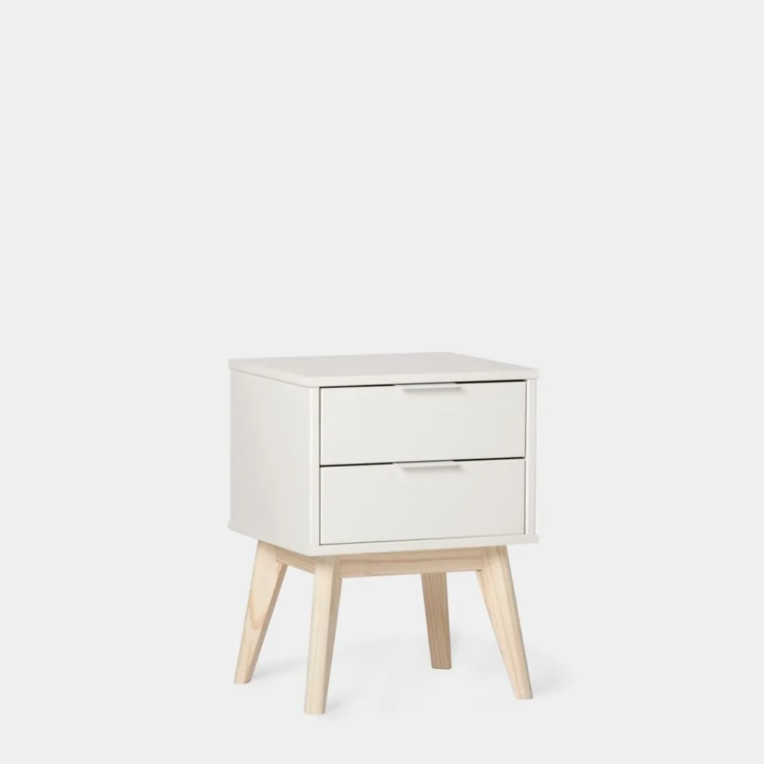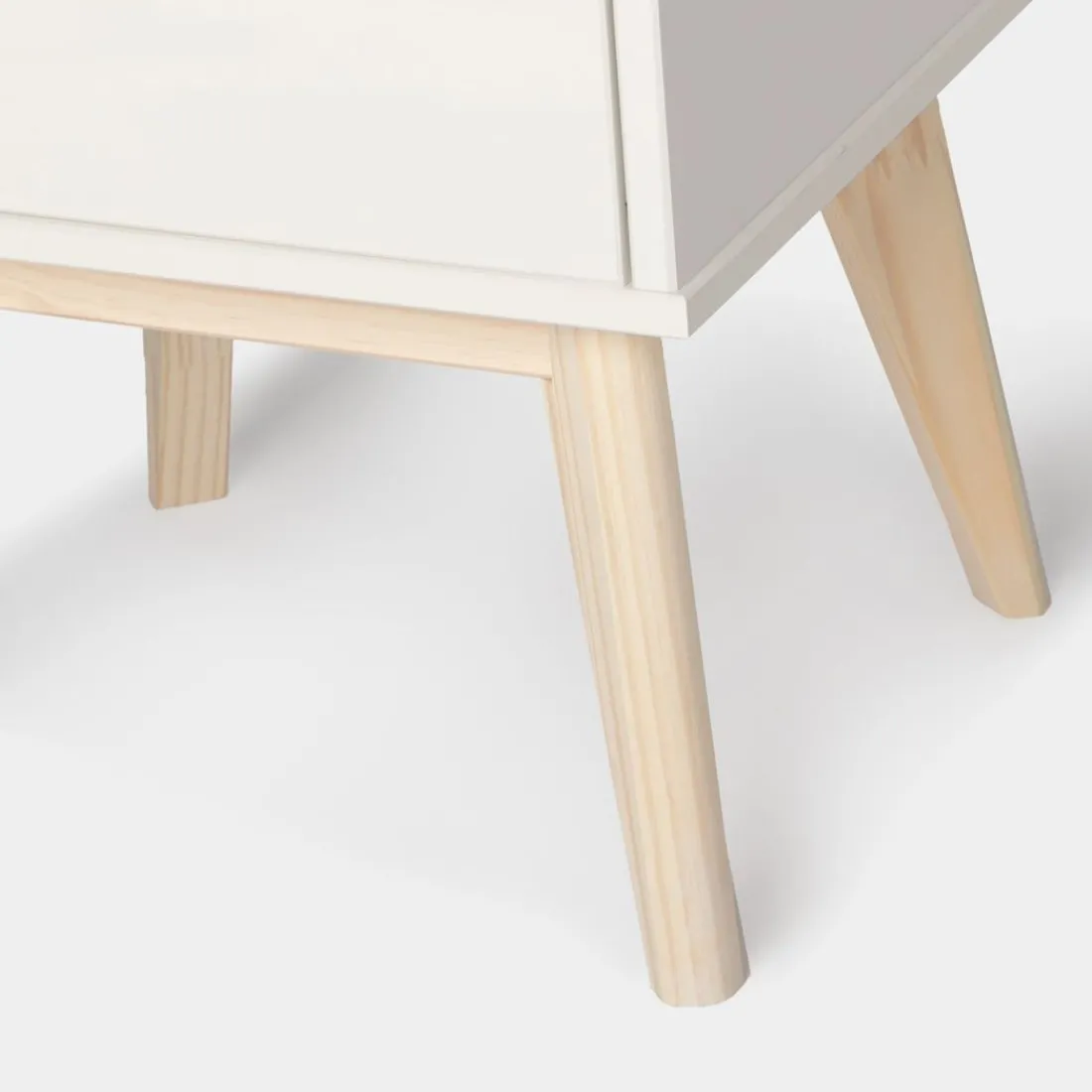 La mesita de noche Troy lacada en blanco con patas en madera maciza es perfecta para conseguir almacenaje extra y mantener tu dormitorio limpio y ordenado. Gracias a su diseño sencillo y atemporal puede encajar con cualquier estilo decorativo. También está disponible en verde antracita, escoge el acabado que más te guste.