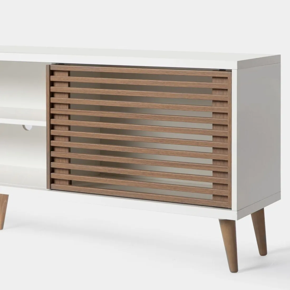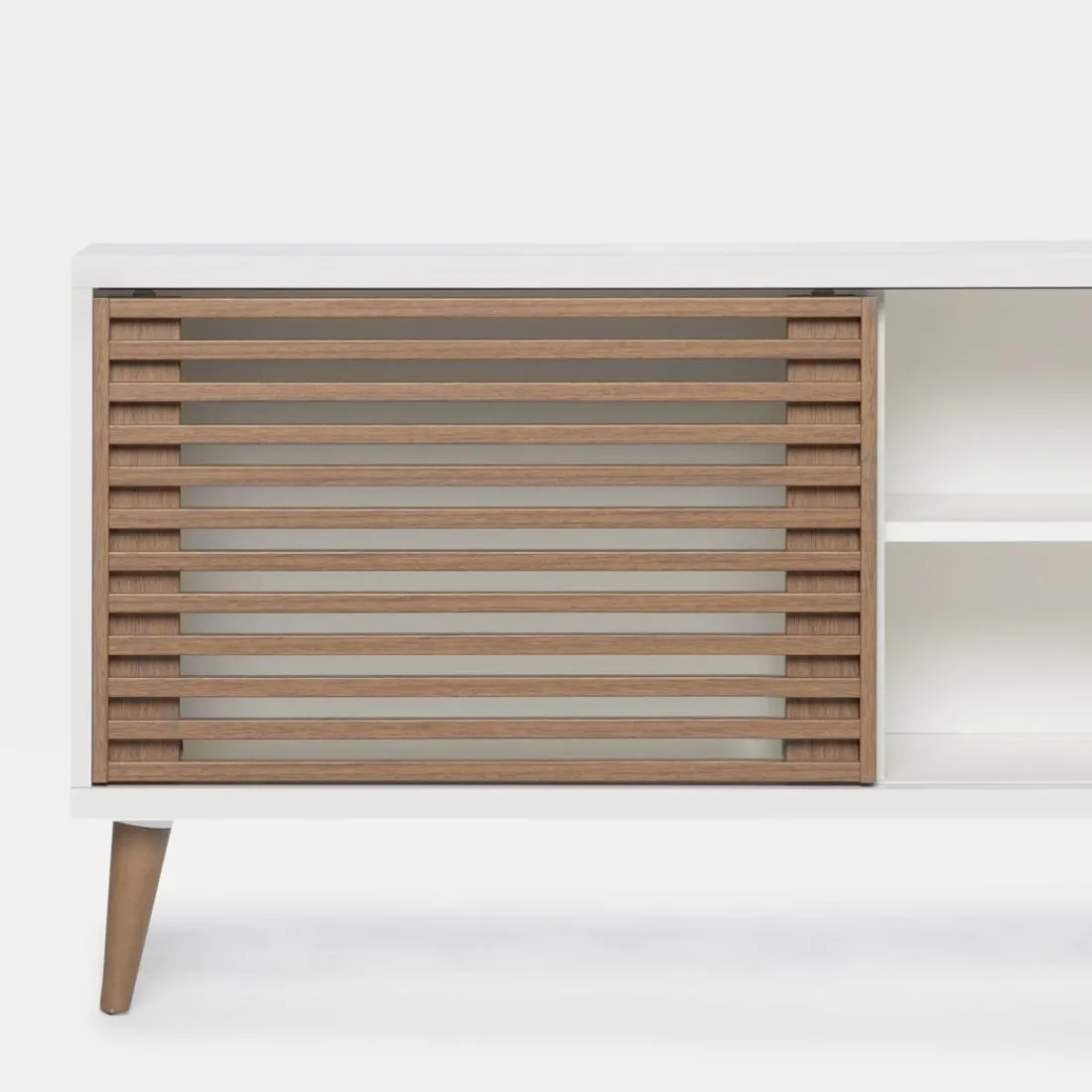 El mueble tv Palm es una pieza que respira tendencia. Además de bonito , este tv de puertas correderas es muy práctico ya que dispone de suficiente espacio para que tengas todo bien organizado. Lo encuentras disponible en dos acabados y en dos medidas de manera que te será sencillo escoger el que más se ajuste a tus necesidades. Si quieres dar un toque nórdico a tu salón este mueble es perfecto.