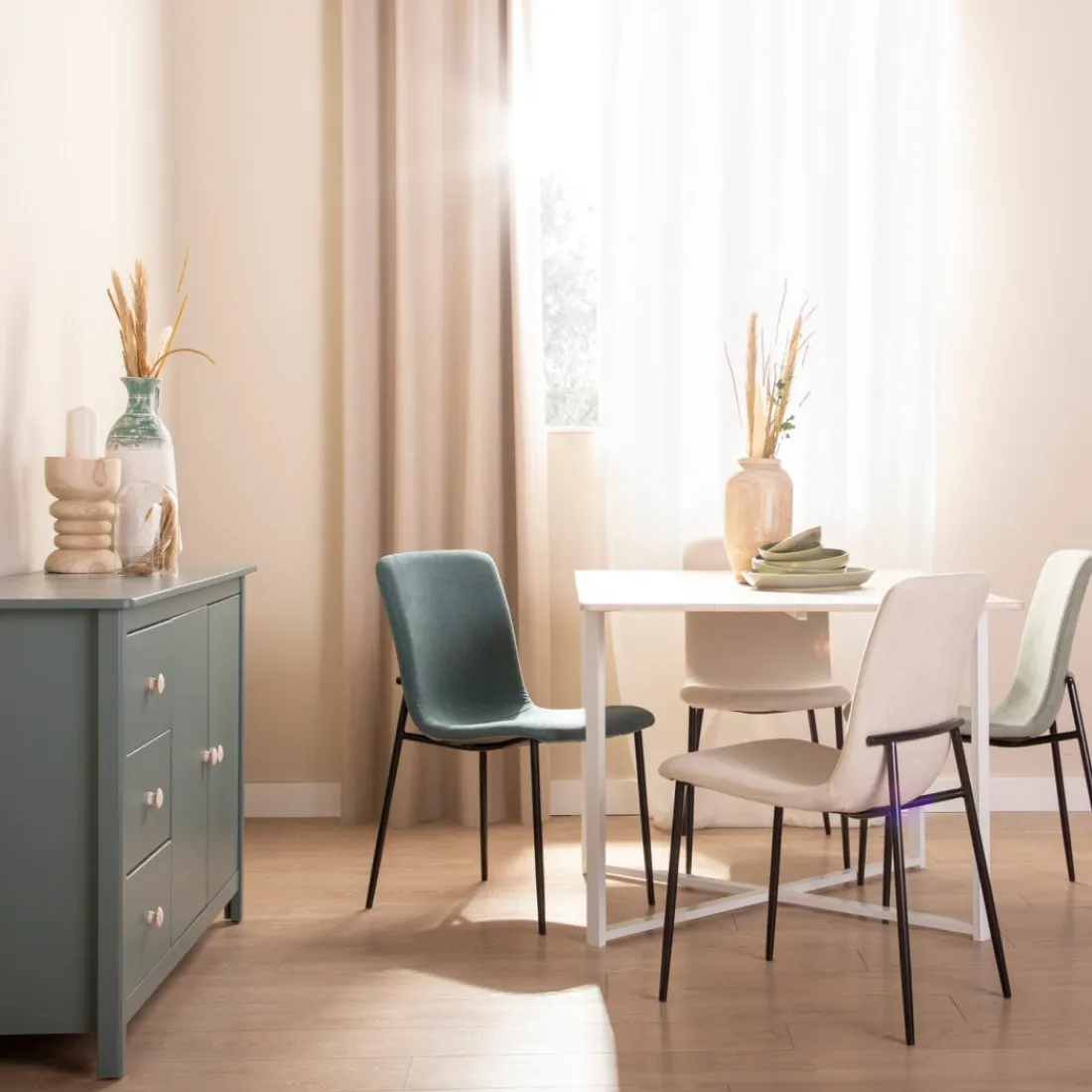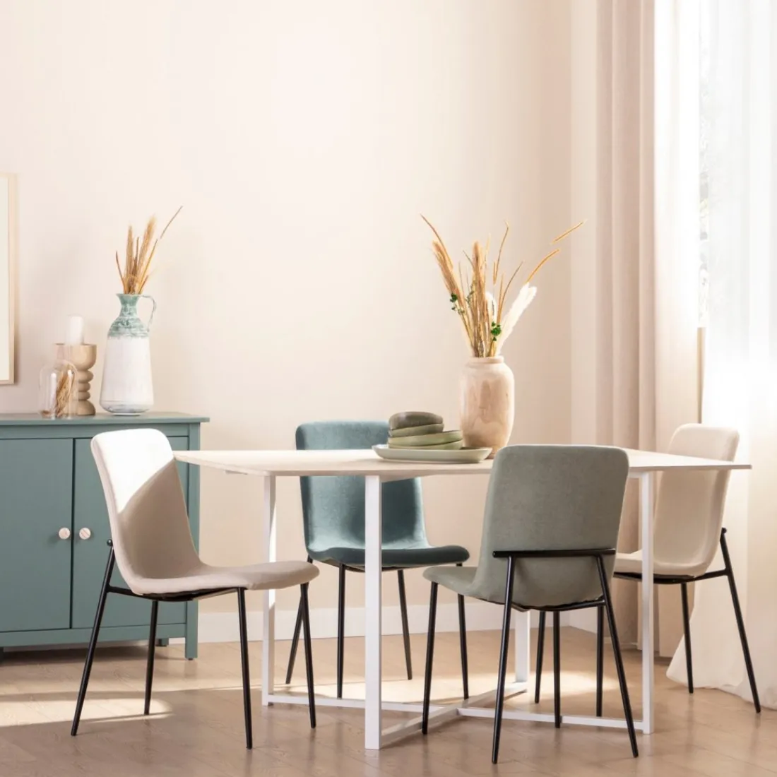 ¡Aprovéchate de este pack! La silla de comedor Eryn en tapizado de poliéster se trata de una gran elección para aquellos que estén buscando un diseño sofisticado y funcional que pueda servir como silla de comedor o de escritorio. Sus patas metálicas negras junto con sus 4 diferentes tonalidades disponibles, le dan ese aire elegante y de tendencia que hará de esta silla la elección preferida para aquellos amantes del estilo industrial o moderno.