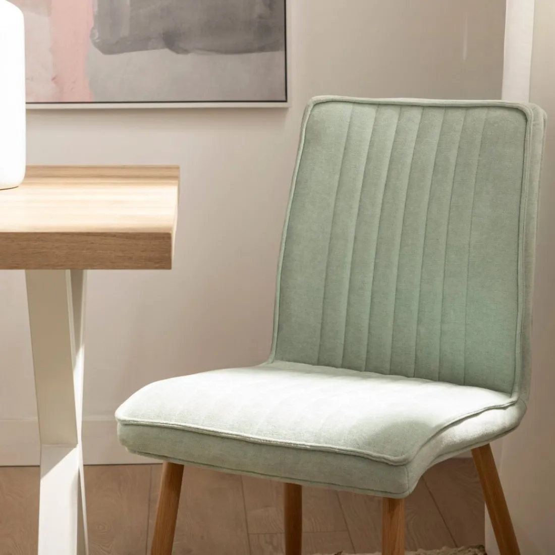 ¡Aprovéchate de este pack! Eleva el estilo y la comodidad de tu hogar con la silla de comedor Mika. Su tapizado menta y patas naturales añaden un toque de sofisticación a cualquier estancia. Versátil y ergonómica, puedes usarla tanto en el comedor como en tu espacio de trabajo. Disponible en varios tapizados, elige el que mejor se adapte a tu estilo decorativo.
