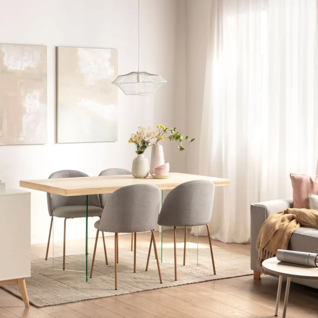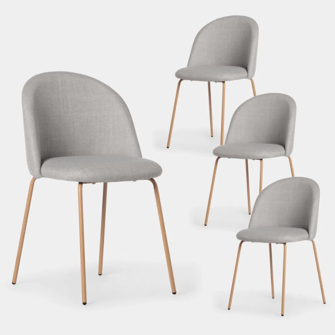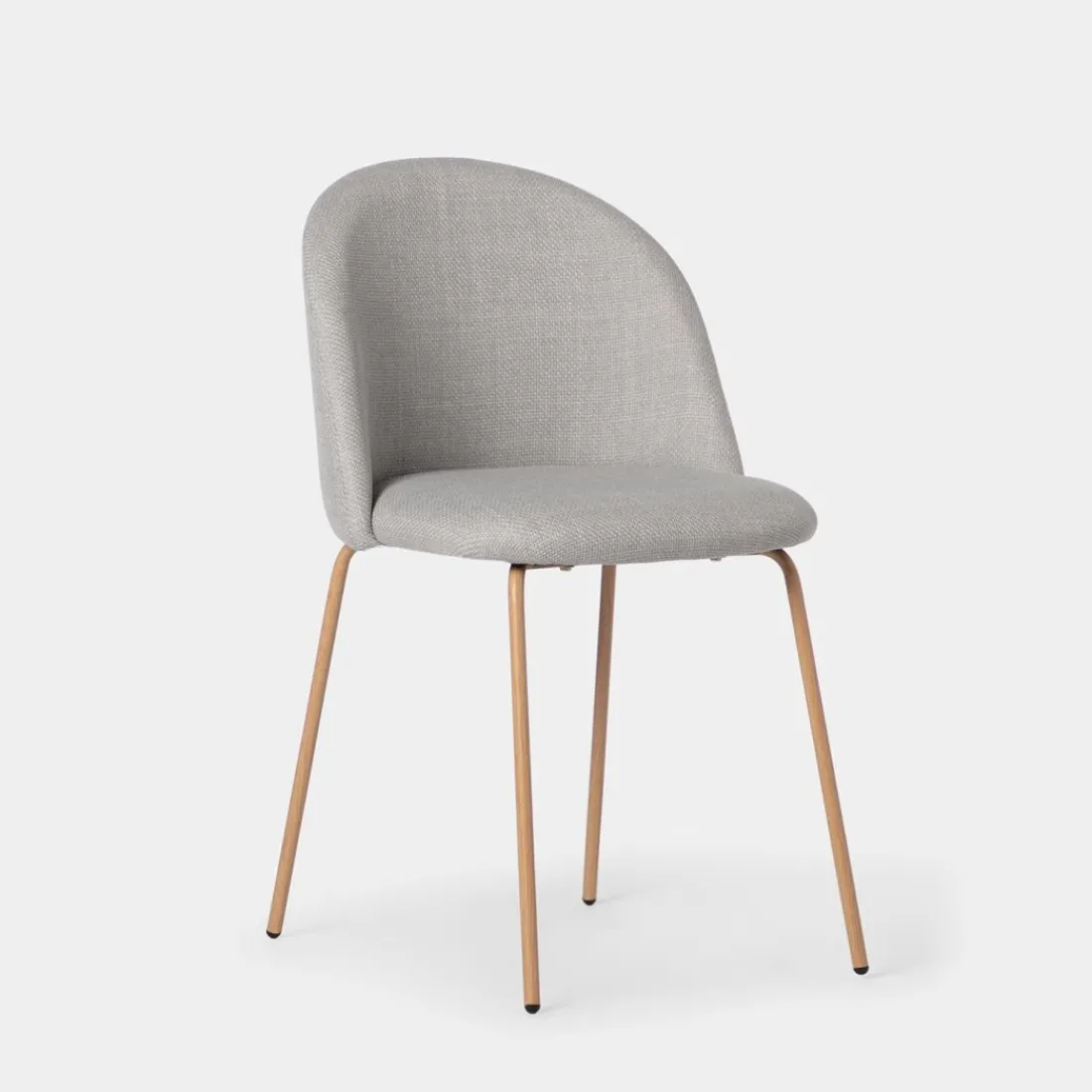 ¡Aprovéchate de este pack! La silla de comedor Olivia tapizada en color gris y pata metálica en color natural tiene un diseño elegante y sencillo inspirado en los años 50. Su respaldo corto y redondeado unido al diseño de sus patas cónicas despuntadas recuerdan a esos modelos de sillería sofisticados y funcionales adaptables a cualquier estilo. Elige entre uno de nuestros tapizados disponibles y haz de esta silla un elemento distintivo de tu salón o comedor.