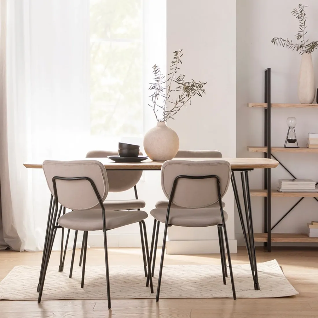 ¡Aprovéchate de este pack! La silla de comedor Taylor en tercipelo topo es la apuesta perfecta para los amantes del diseño atemporal. Sus patas metálicas en color negro, le aportan además un carácter sofisticado y una polivalencia que le permite ser también una buena alternativa como silla de escritorio. Combínalo a tu gusto con alguno de los 3 acabados disponibles.
