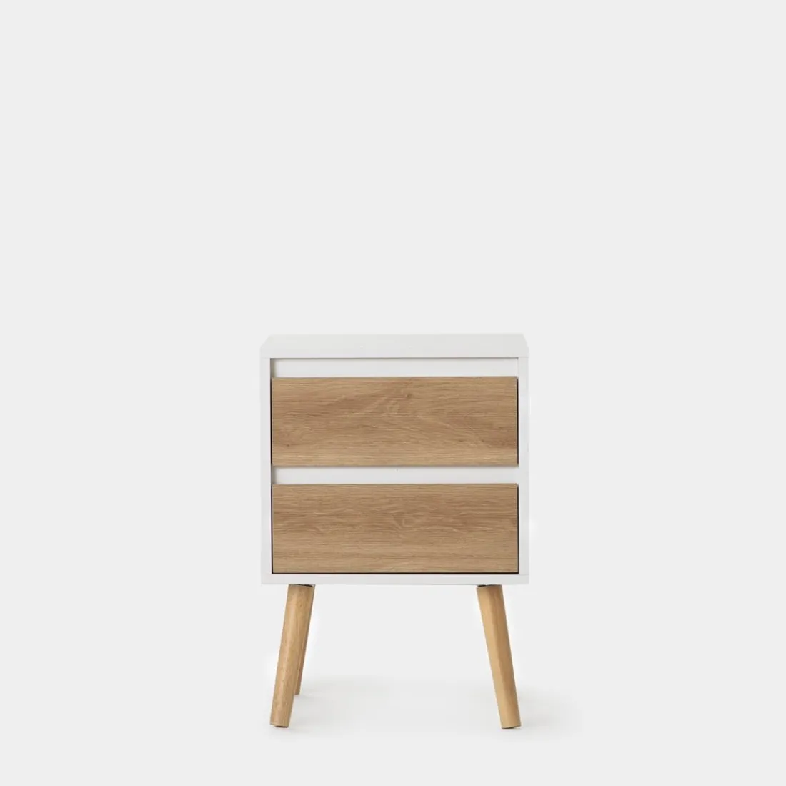 ¡Aprovéchate de este pack de 2 mesitas! Con la mesita de noche blanca de dos cajones en color natural Kemi conseguirás crear un ambiente fresco y luminoso. Su diseño nórdico y sencillo convierte a esta mesita en una apuesta segura para completar la decoración de tu dormitorio. Además, cuenta con dos amplios cajones en los que podrás almacenar y organizar todas tus pertenencias.