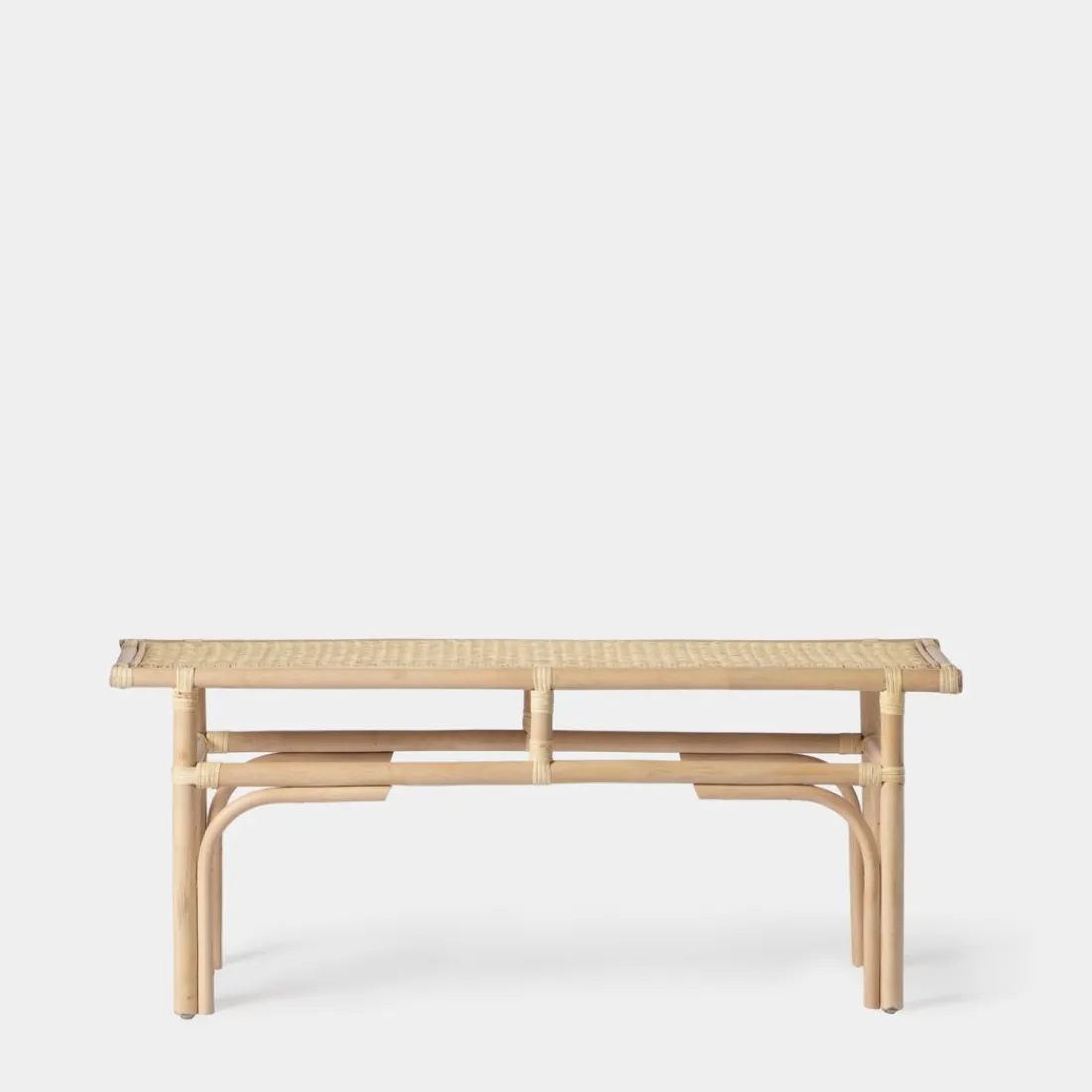 El banco en ratán natural Elos es una pieza versátil y multifuncional que puede utilizarse tanto como pie de cama, como banco para el recibidor. Ha sido elaborado a mano con ratán natural, por lo que cada pieza es única y puede presentar ligeras irregularidades propias del material y de su elaboración.