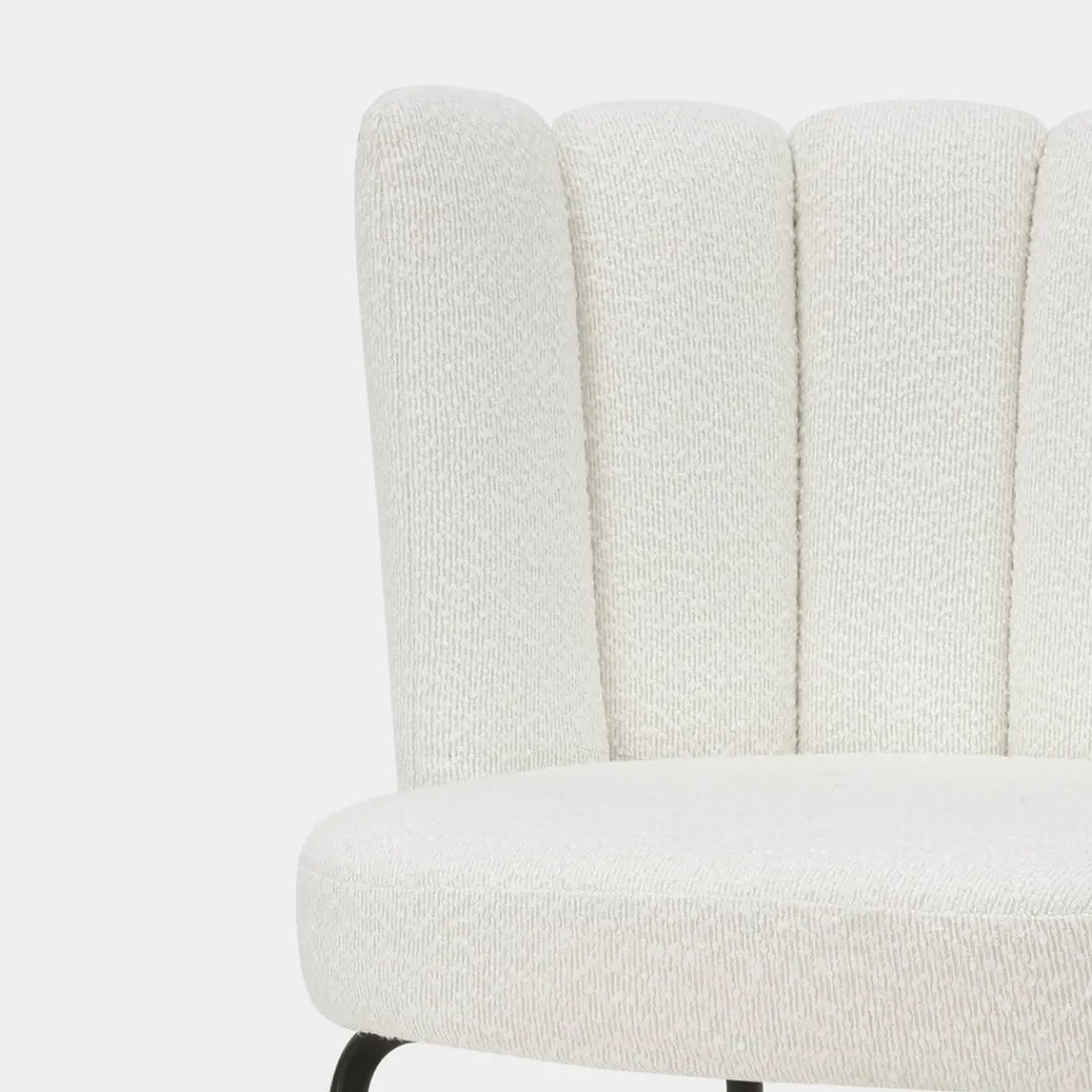 La silla de comedor Enis destaca por su exclusivo respaldo en forma de flor, que aporta un toque de originalidad y elegancia. Tapizada en suave bouclé blanco, combina a la perfección con sus patas negras, creando un contraste moderno y sofisticado. Este diseño único no solo es estéticamente atractivo, sino también cómodo, ideal para añadir un toque de distinción a tu comedor o sala de estar.
