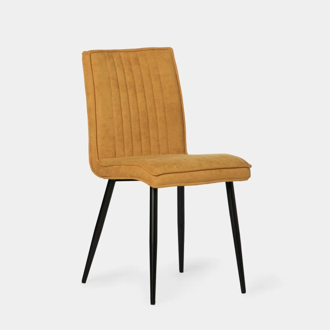 Añade un toque de color y modernidad a tu comedor con la silla Mika tapizada en un vibrante tono mostaza y patas metálicas negras. Su diseño contemporáneo fusiona la comodidad con el estilo, convirtiéndola en el complemento perfecto para tus reuniones y cenas familiares.