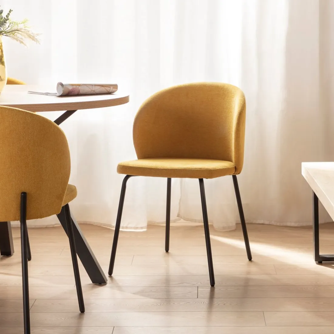 Aporta un toque elegante y sofisticado a tu hogar con la silla de comedor tapizada en mostaza con pata negra Norah. Su diseño sencillo y minimalista encaja en cualquier estilo decorativo y aporta carácter y personalidad a cualquier estancia. Está disponible en una amplia gama de tonos, escoge el que mejor encaje con tu estilo.