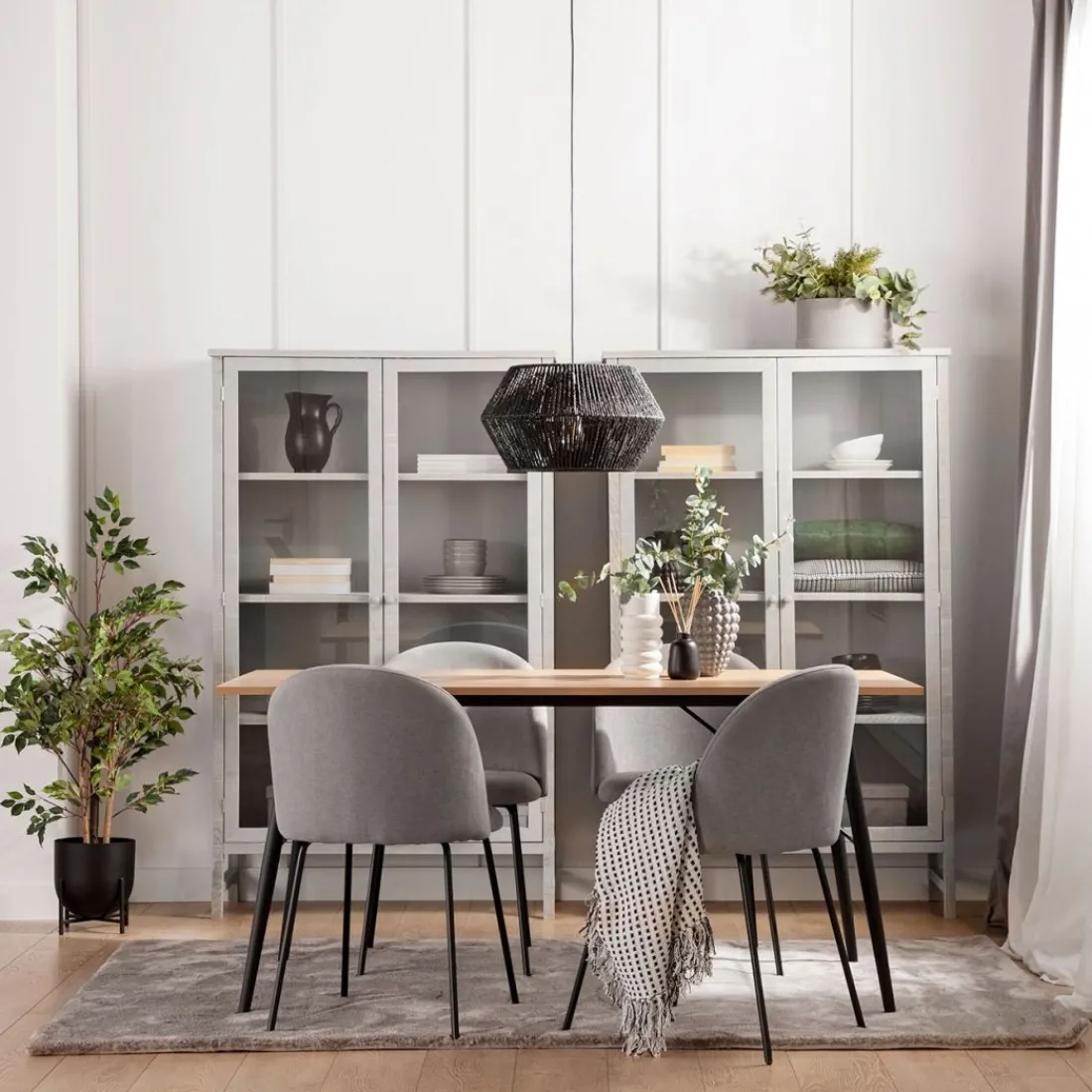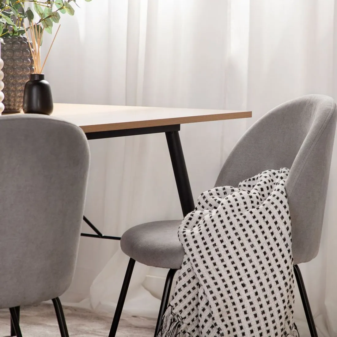 La silla de comedor Olivia en tapizado de poliéster gris y pata metálica negra tiene un diseño elegante y sencillo inspirado en los años 50. Su respaldo corto y redondeado unido al diseño de sus patas cónicas despuntadas recuerdan a esos modelos de sillería sofisticados y funcionales adaptables a cualquier estilo. Elige entre una de nuestras 3 tonalidades de tapizados disponibles y haz de esta silla un elemento distintivo de tu salón, comedor o escritorio.
