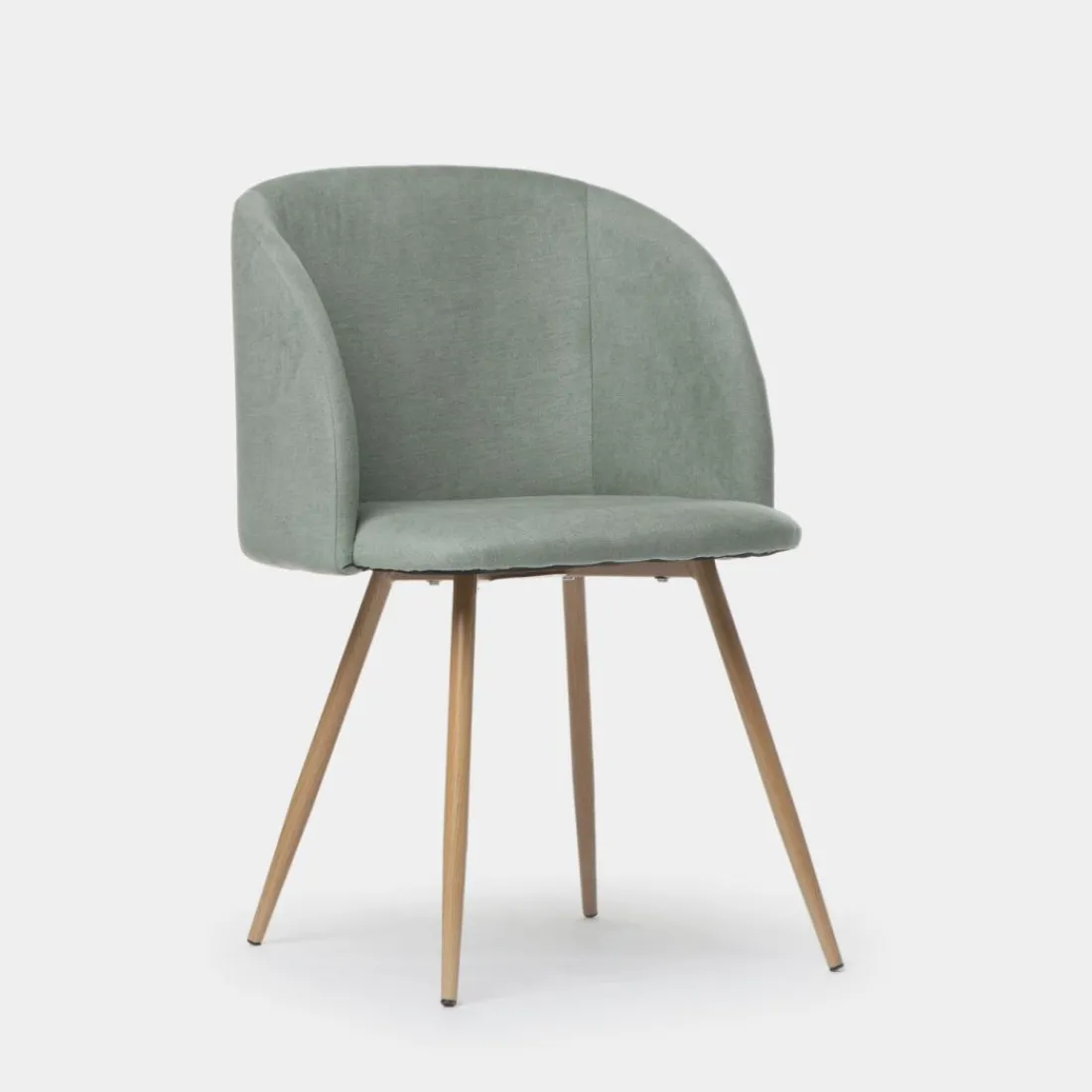 La silla de comedor tapizada Scot con pata metálica efecto madera hará que la decoración de tu hogar destile elegancia por todos sus rincones. Su respaldo ergonómico con tapizado en poliéster está disponible en una preciosa gama de tonalidades que llenará inmediatamente de color tu salón o comedor.