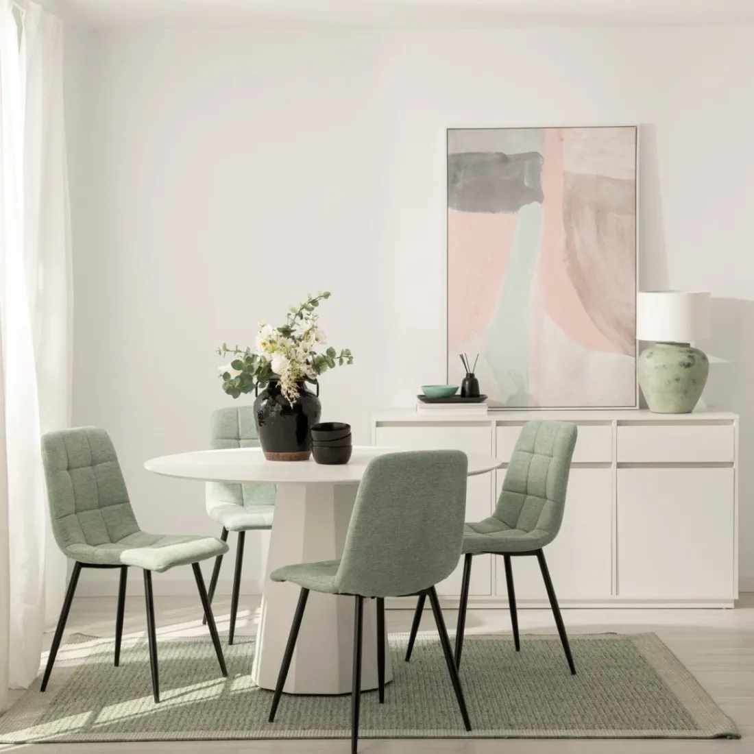 La silla de comedor tapizada en menta con pata negra Ailan es la elección perfecta para dar un toque de estilo y confort a tu hogar. Su diseño sencillo y minimalista encaja en cualquier estilo decorativo y aporta carácter y personalidad a cualquier estancia. Está disponible en una amplia gama de tonos, escoge el que mejor encaje con tu estilo.