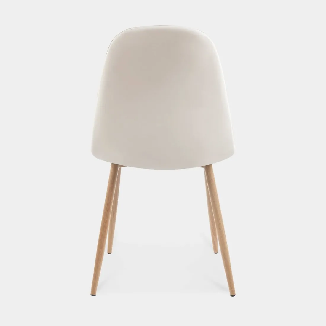 La silla de comedor Elia, tapizada en sofisticada polipiel beige y con patas metálicas efecto madera, es la elección perfecta para completar tu hogar. Su diseño sencillo y minimalista aporta un toque de elegancia a cualquier espacio. Gracias a su ergonomía, es ideal tanto para el comedor como para el escritorio, garantizando comodidad y estilo. Disponible en una variedad de tapizados, escoge el que mejor encaje con tu estilo.