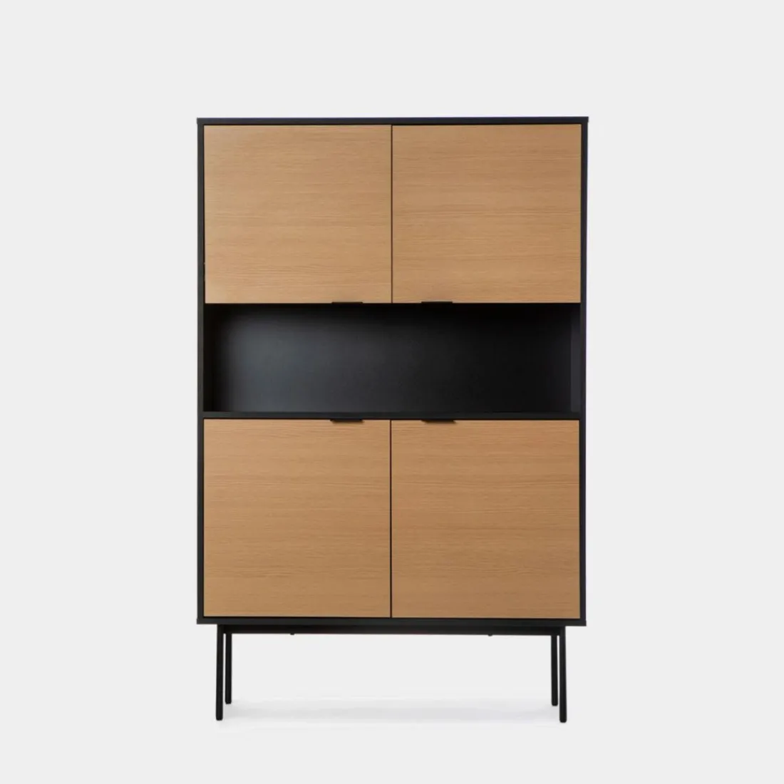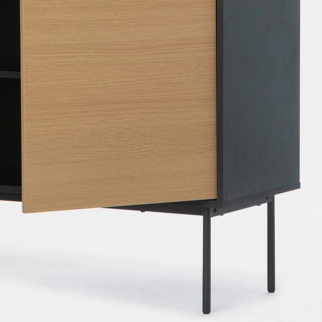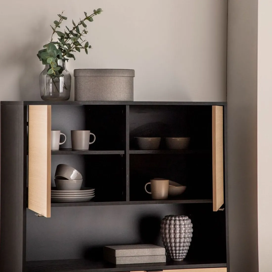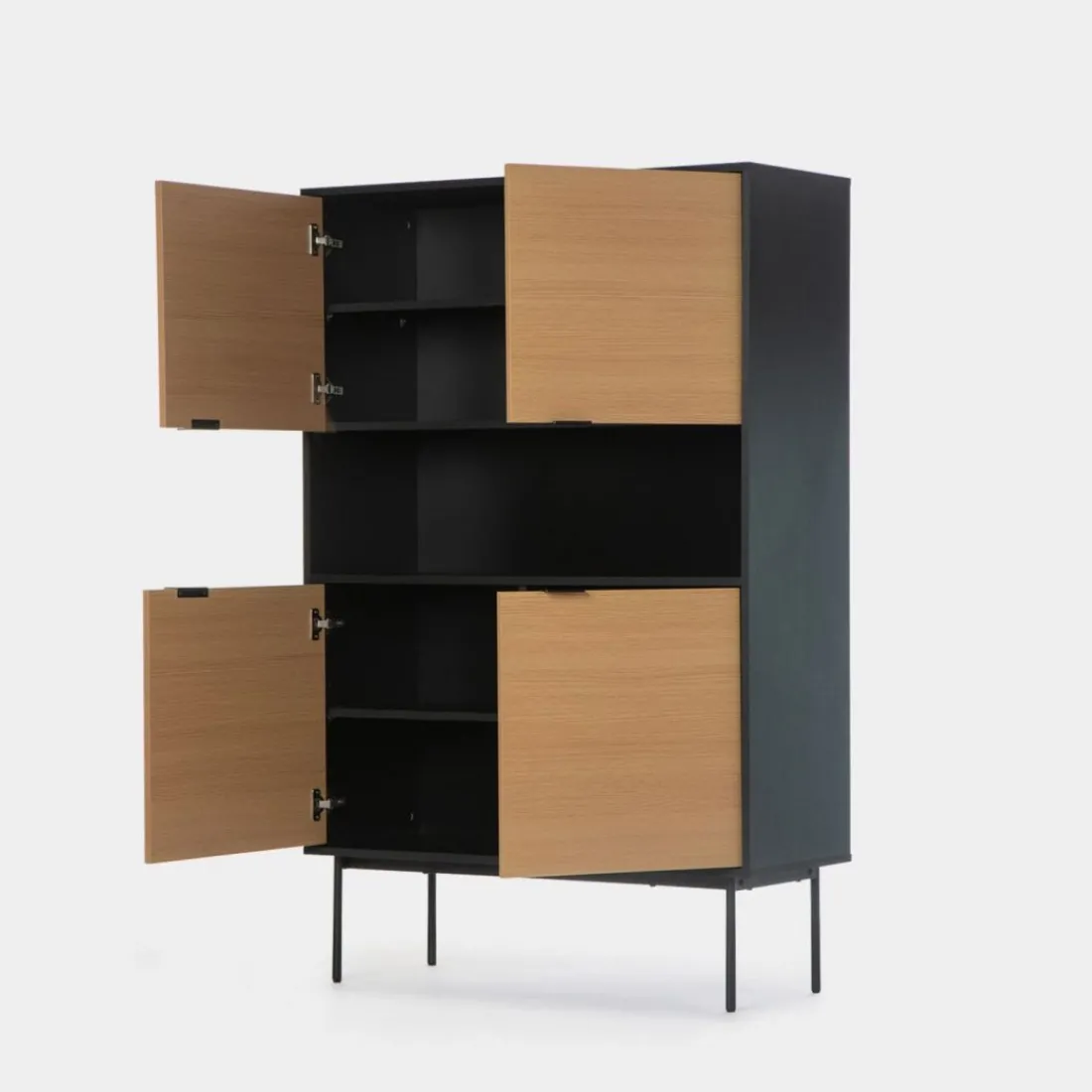 La vitrina Copenhague de estilo industrial derrocha tendencia, y es que la combinación de roble y negro es pura actualidad. Está dotada de cuatro puertas y baldas interiores dónde poder guardar lo que desees. Es una pieza de gran capacidad que puede emplazarse tanto en un comedor, como en un despacho u oficina.Para mayor estabilidad del mueble, aconsejamos su anclaje a la pared. Combínalo con otras piezas de la colección.