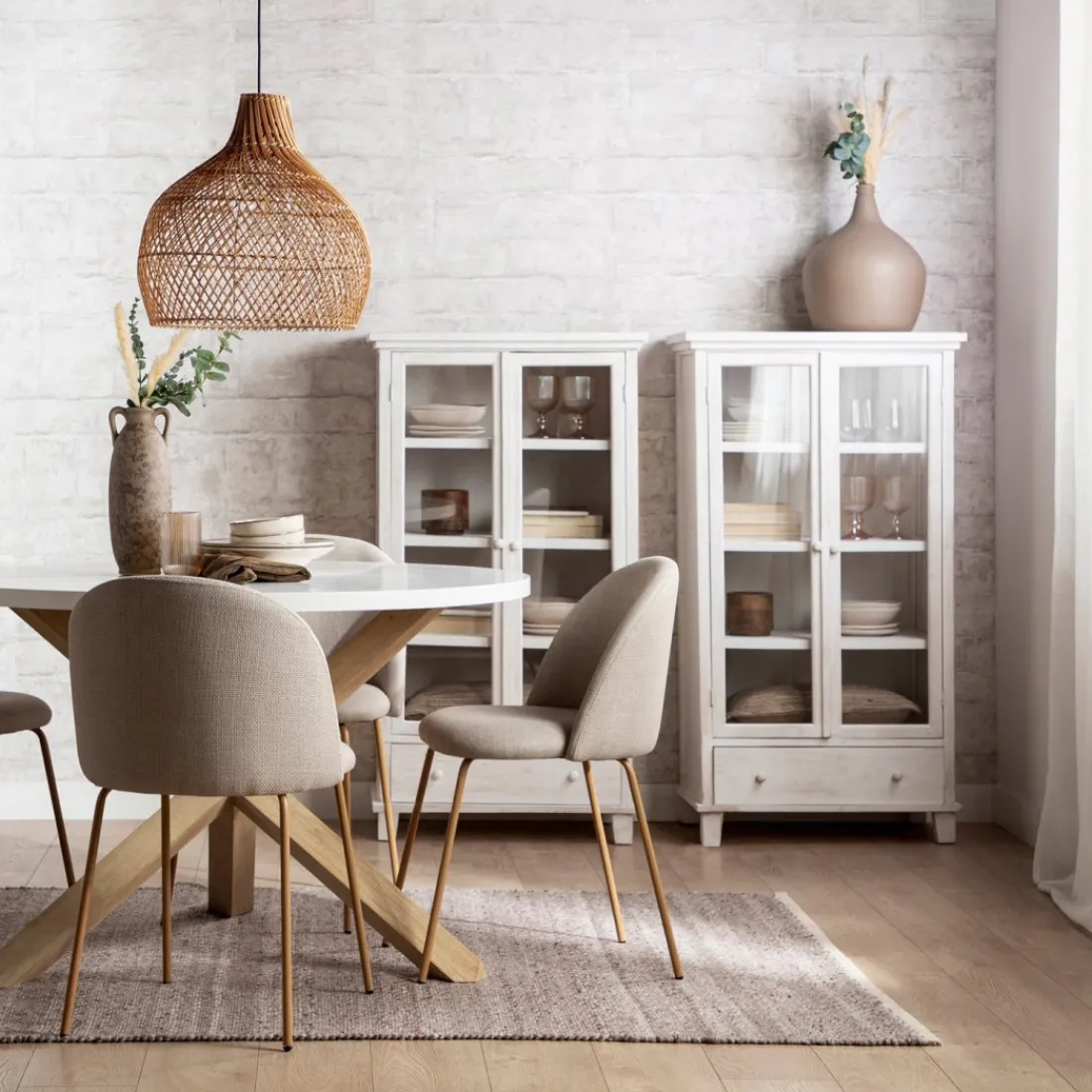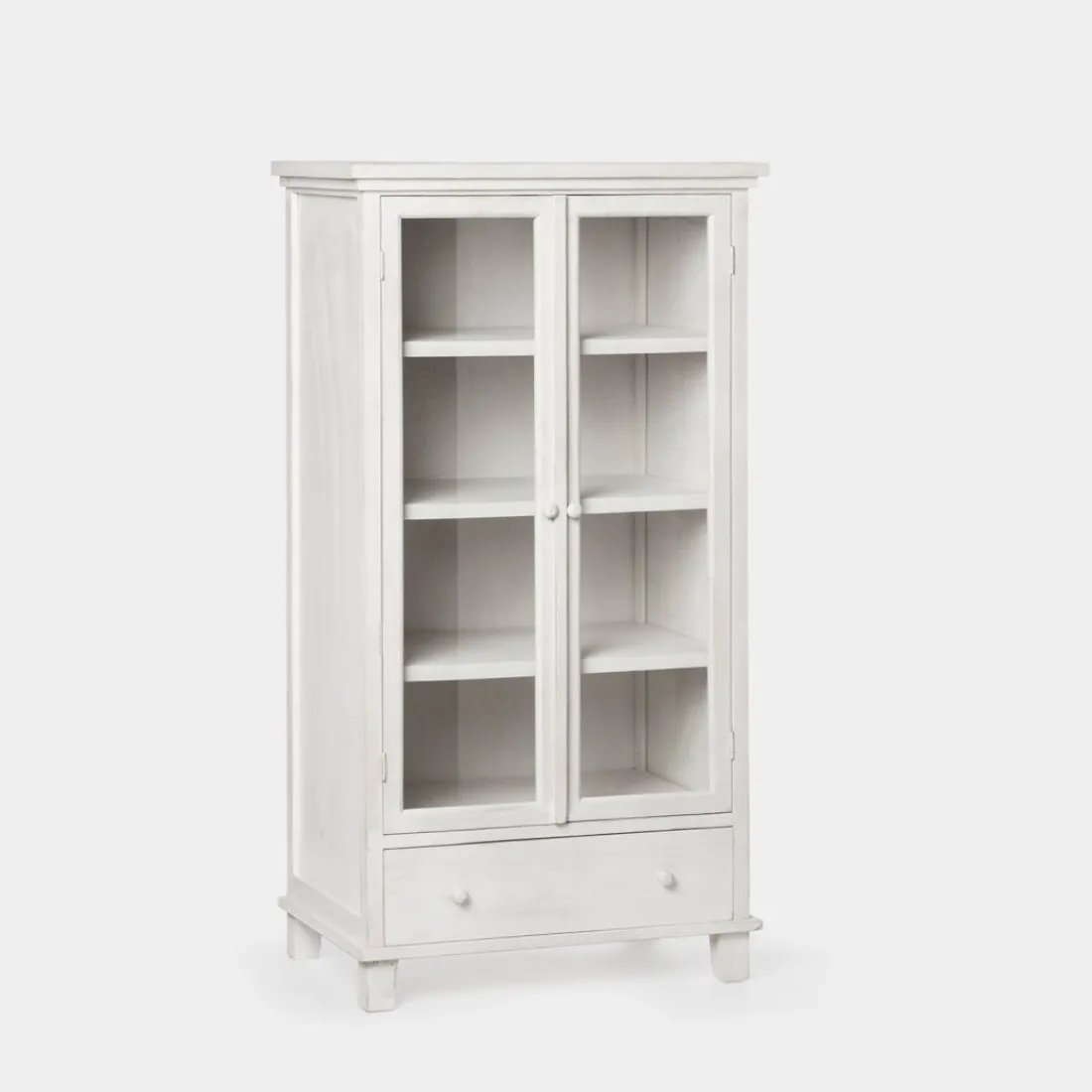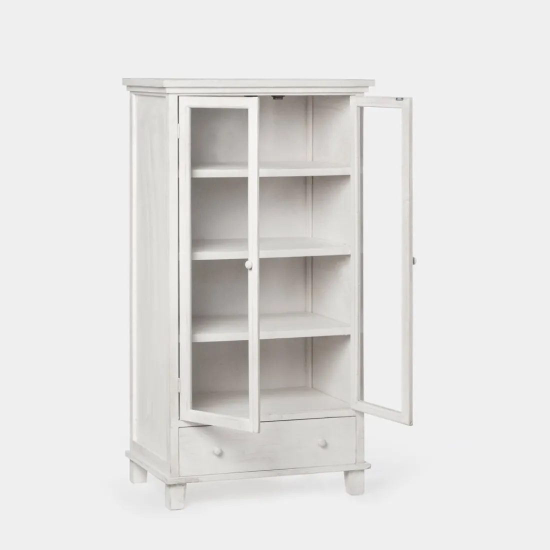 La vitrina Folk, fabricada en madera reciclada libre de tratamientos químicos, combina la belleza del estilo natural con la sostenibilidad del upcycling. Cada pieza, elaborada artesanalmente, cuenta una historia única a través de sus imperfecciones y aporta carácter a cualquier estancia. Cuenta con dos puertas acristaladas perfectas para exhibir la vajilla y con un amplio cajón destinado al almacenamiento de mantelería. El sistema de cierre de cajón es sin guia. Para mayor estabilidad del mueble, aconsejamos su anclaje a la pared.
