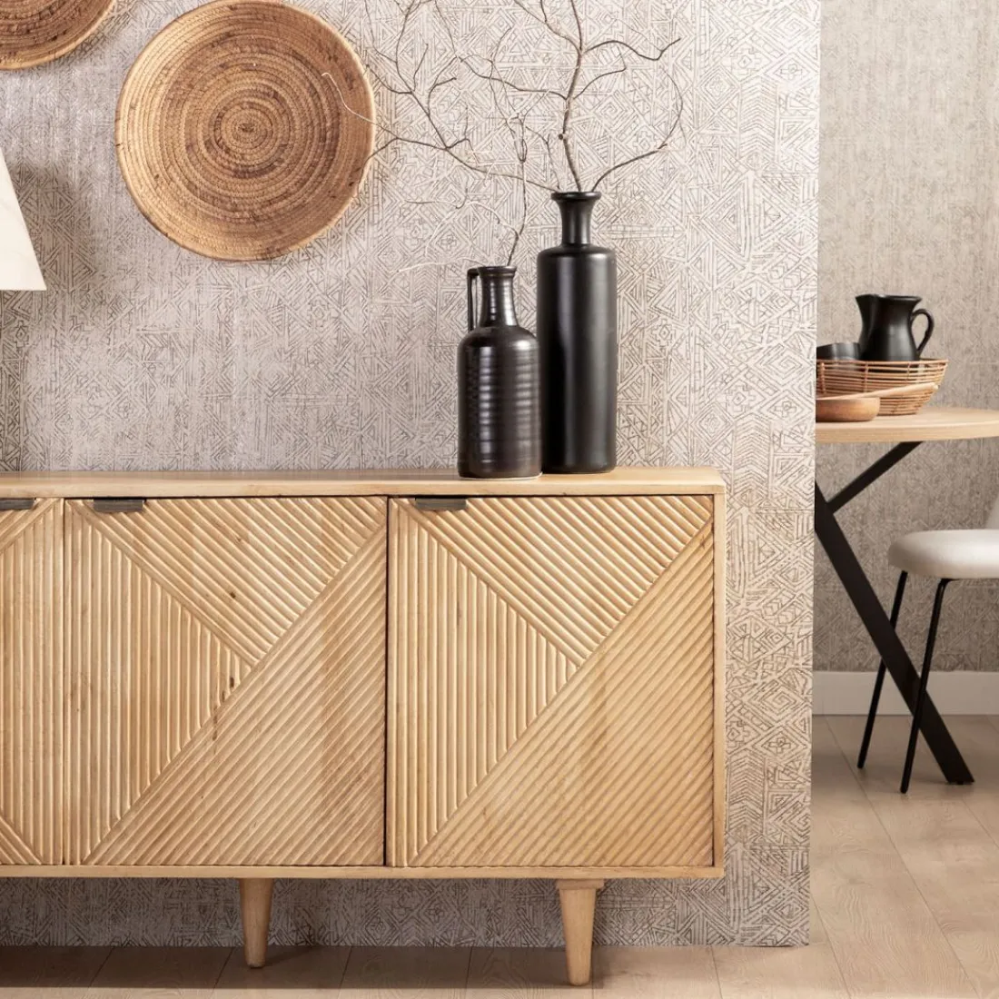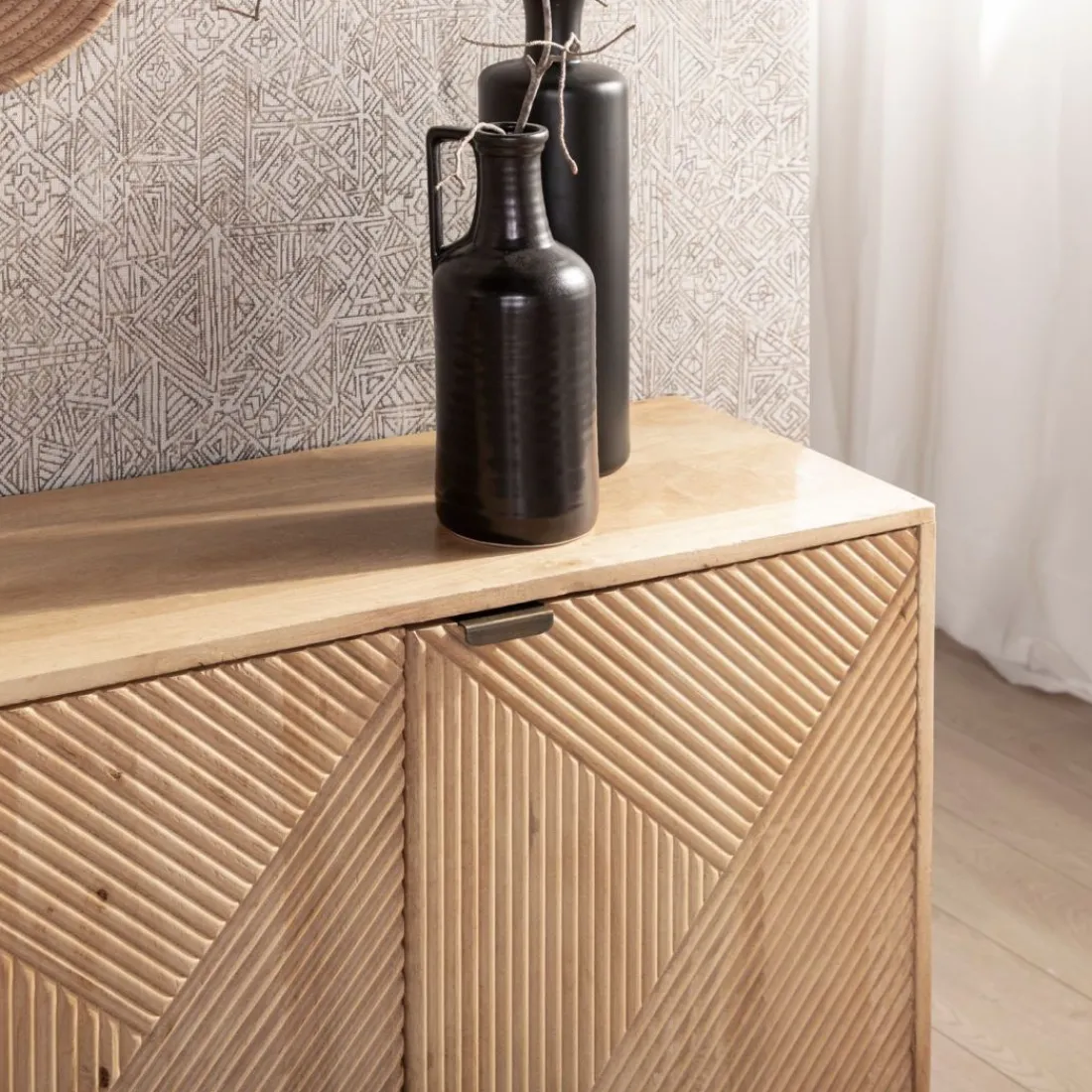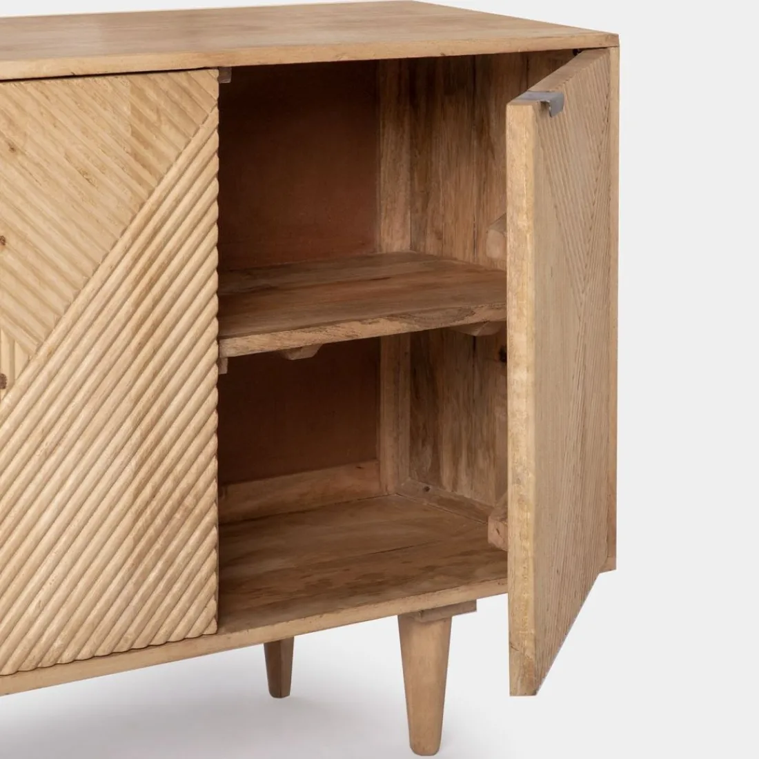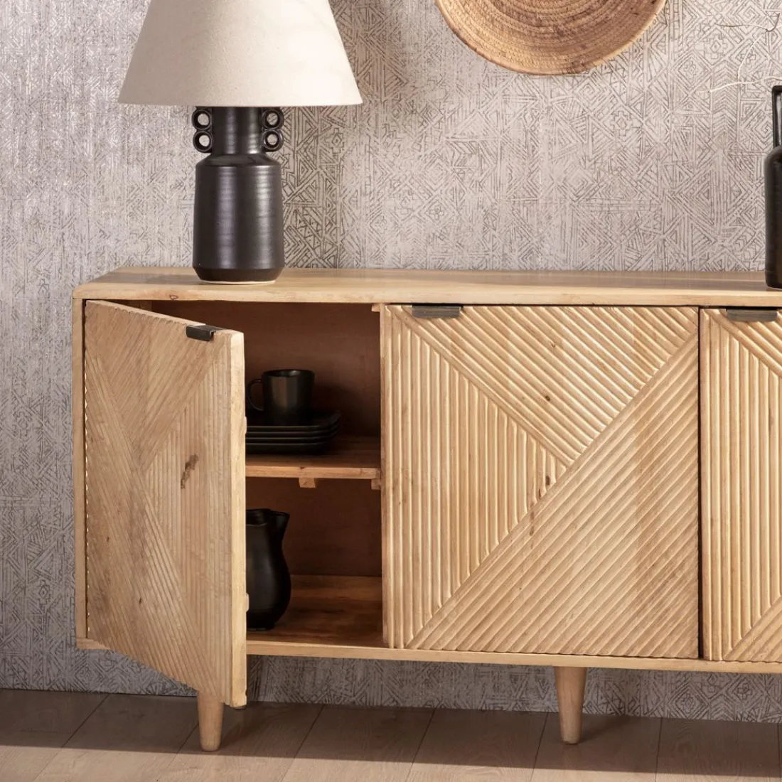 El aparador en madera de mango Arai es perfecto para conseguir un ambiente único y acogedor en tu salón. Es una pieza elaborada de manera artesanal, por lo que es única. Dispone de gran capacidad para poder almacenar tu mantelería o vajilla favorita. Para mayor estabilidad del mueble, aconsejamos su anclaje a la pared. Combínalo con el mueble de TV Arai y consigue el look completo.