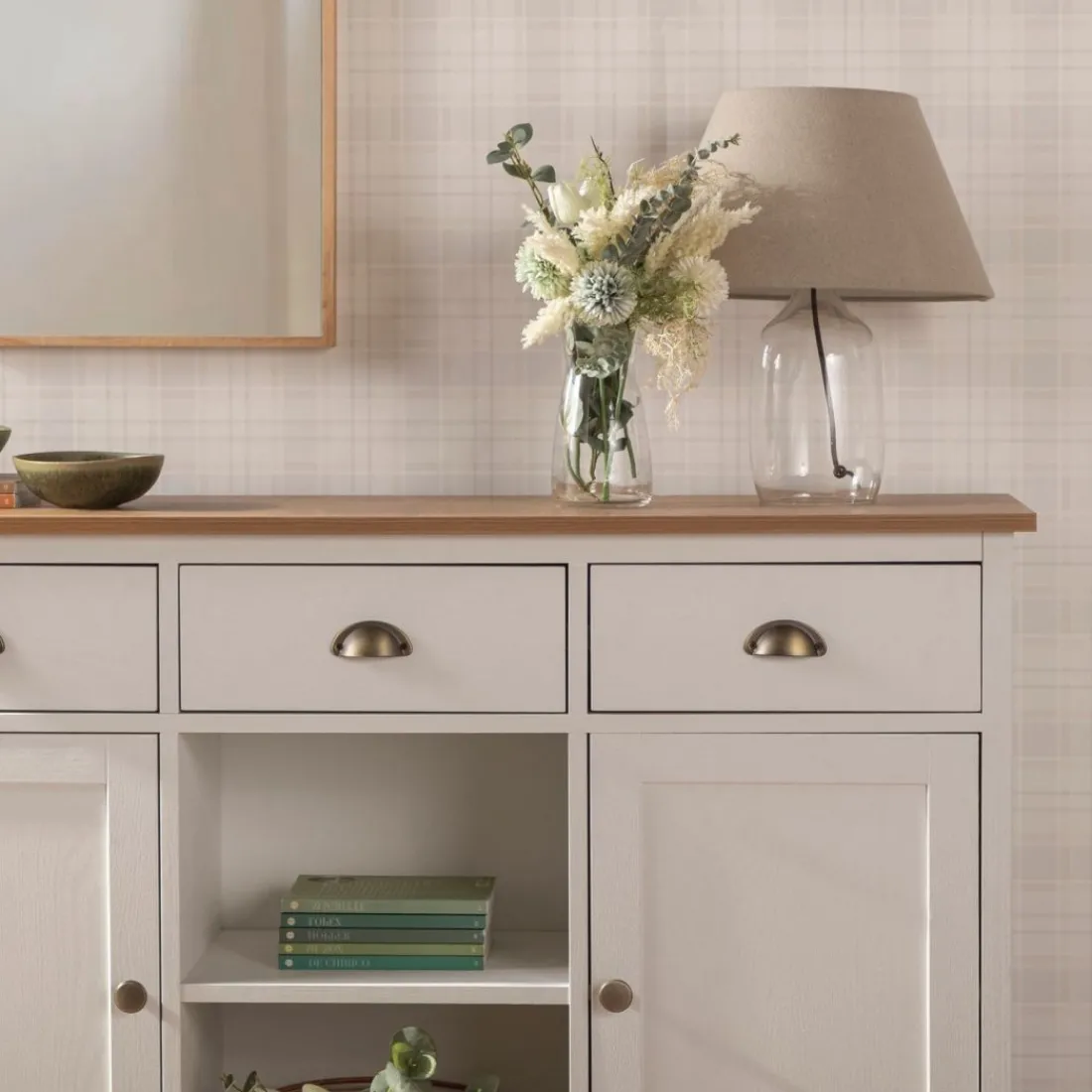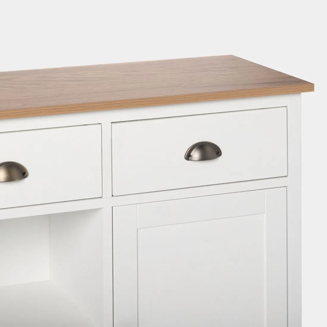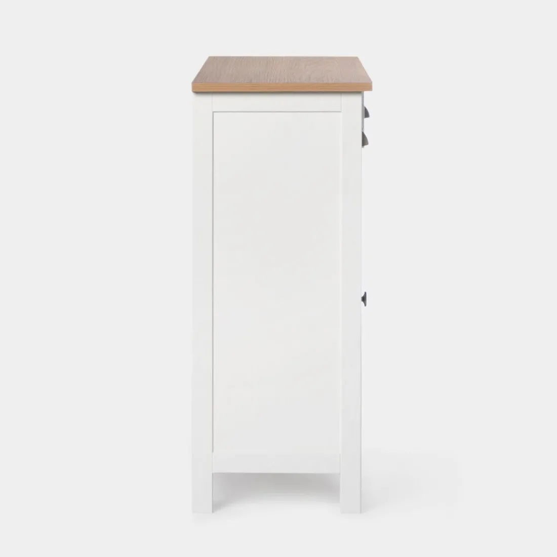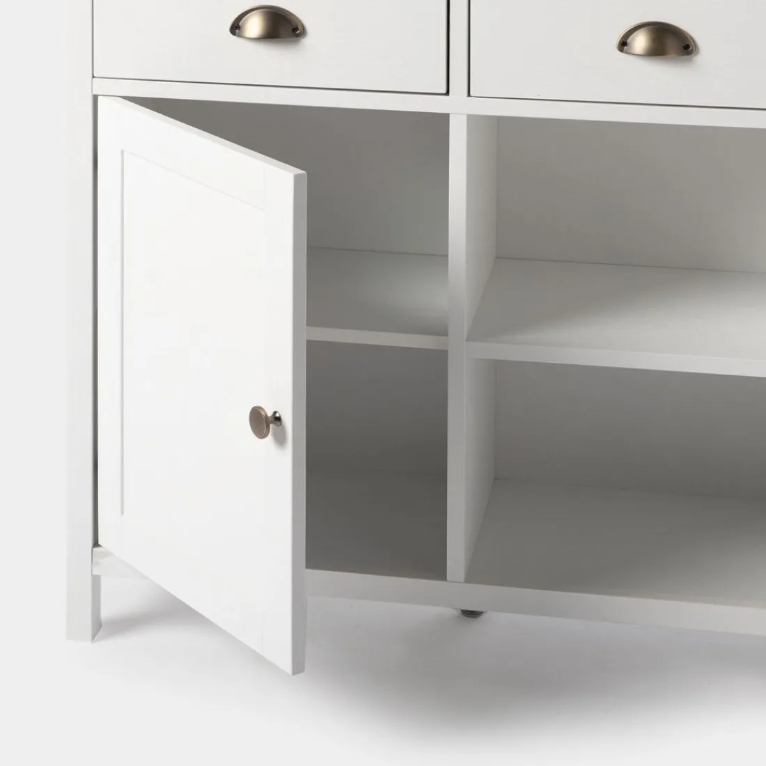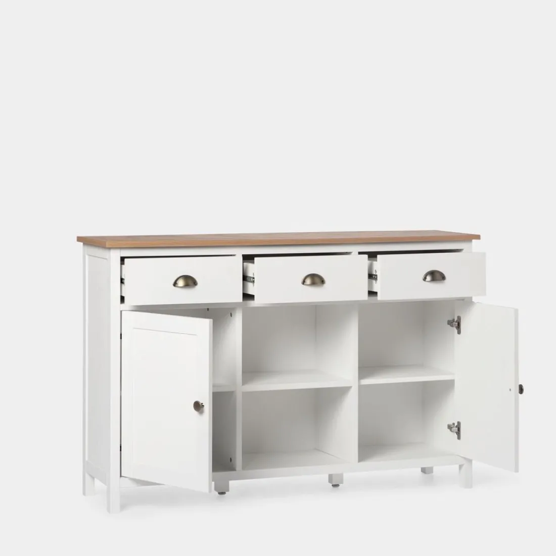 Con el aparador estrecho blanco Marais conseguirás el espacio de almacenamiento adicional que estás buscando para tu hogar. Gracias a su gran capacidad de almacenaje podrás guardar todo el menaje del hogar y mantener el orden en casa. Sus tres cajones cuentan con un sistema de cierre con retención que evita que se den golpes al cerrar e impide la apertura involuntaria. Para mayor estabilidad del mueble, aconsejamos su anclaje a la pared.