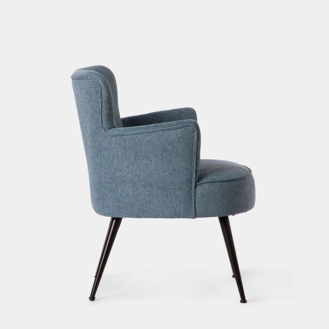 La butaca de lectura Megan tapizada en color azul con pata metálica negra es la pieza que necesitas para crear el rincón de lectura o de descanso perfecto. Está disponible en diferentes colores y acabados para que puedas escoger el que mejor encaje con tu estilo.