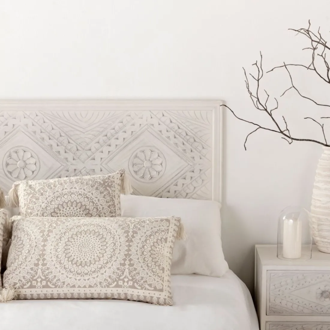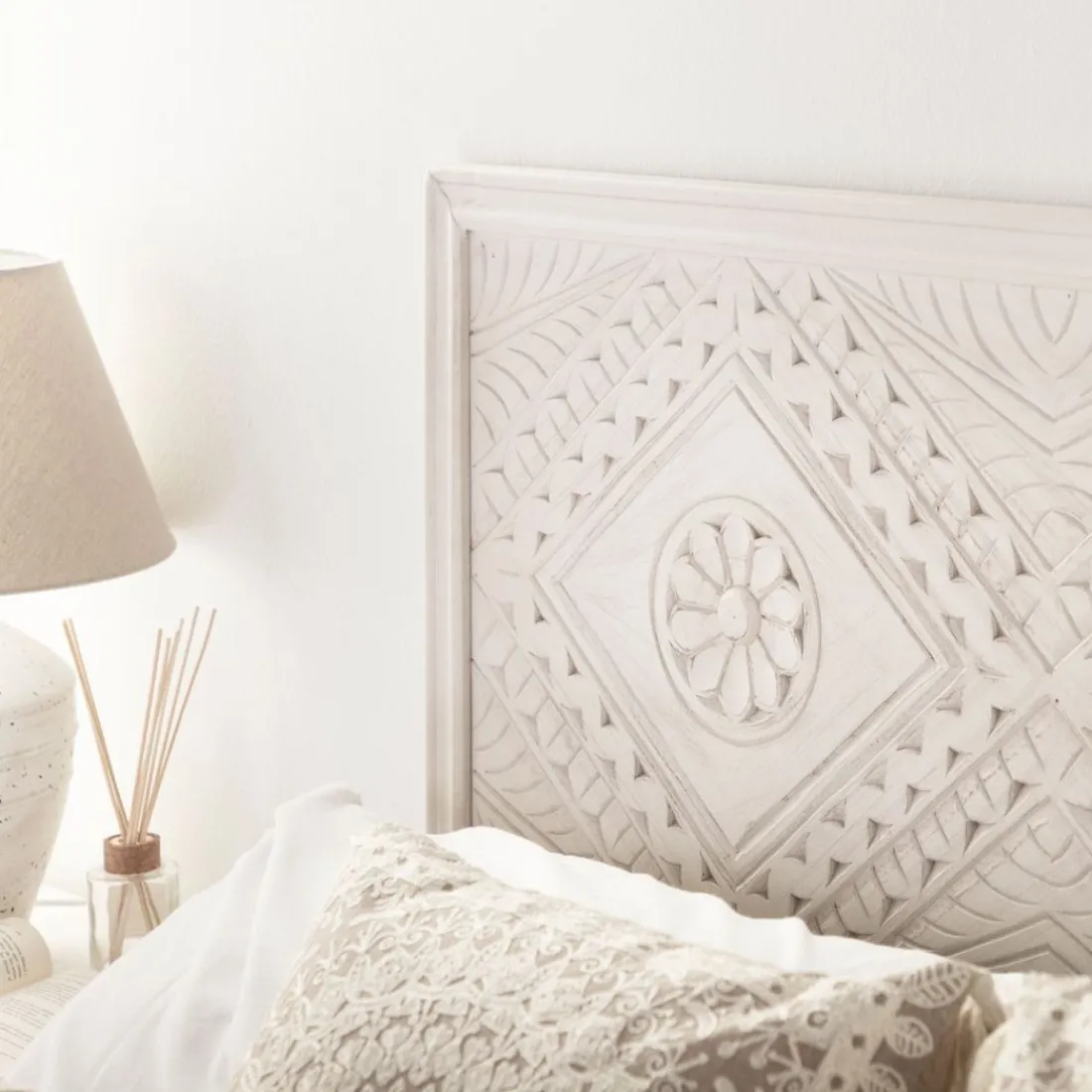 Dale a tu habitación un toque de personalidad con el cabecero en blanco vintage Sinta. Tiene un diseño original que no pasará desapecibido. Se puede utilizar con camas de 135, 150 y 160 cm. La tornillería no está incluida. Si quieres el look completo combínalo con la mesita de noche Sinta, quedará genial.