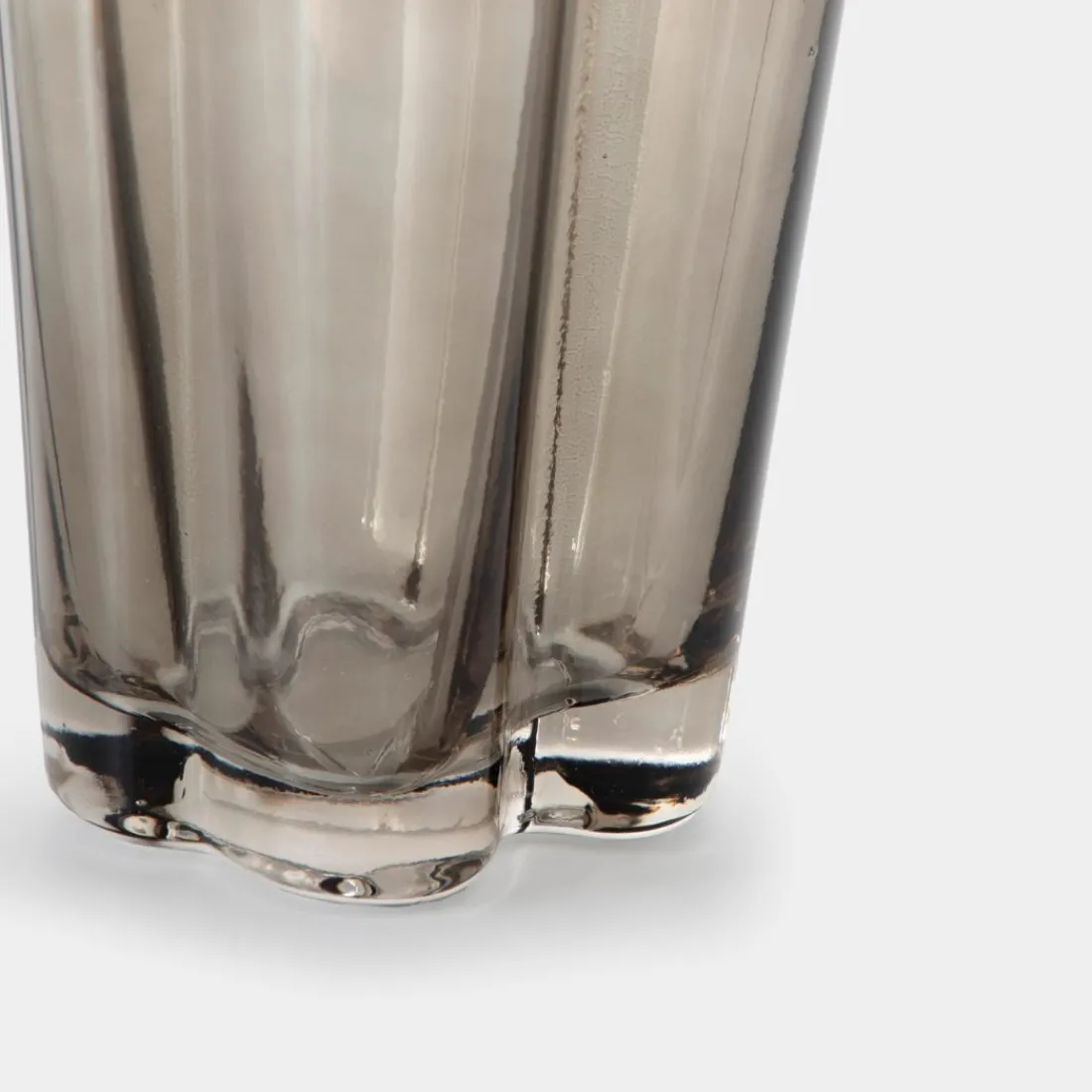 El elegante jarrón de cristal ahumado Pui es una pieza decorativa que aporta un toque de sofisticación y estilo a cualquier espacio. Su diseño en forma natural, con contornos fluidos y orgánicos, lo convierte en un elemento único que destaca tanto vacío como con flores.