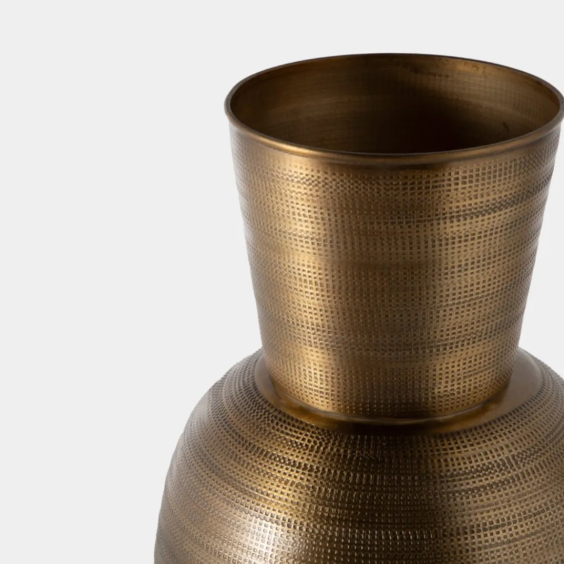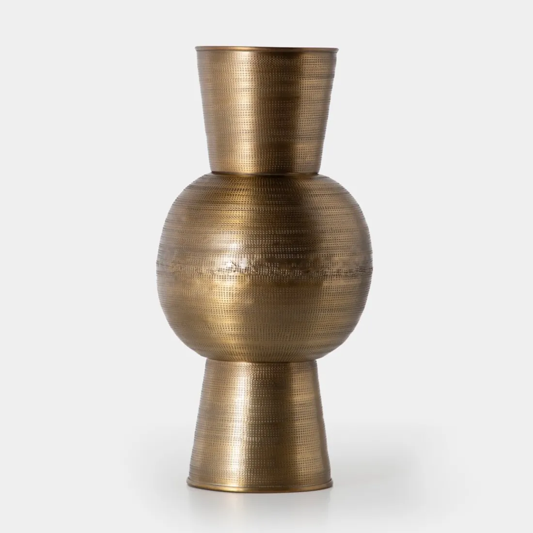 El elegante jarrón Solum, de forma geométrica y acabado dorado, aporta sofisticación y modernidad a cualquier espacio. Su diseño contemporáneo, con líneas limpias y angulares, lo convierte en un elemento visualmente atractivo, ideal para salones, entradas o dormitorios.