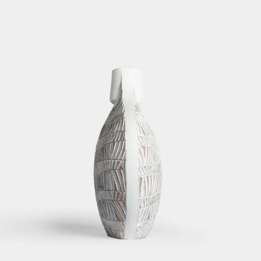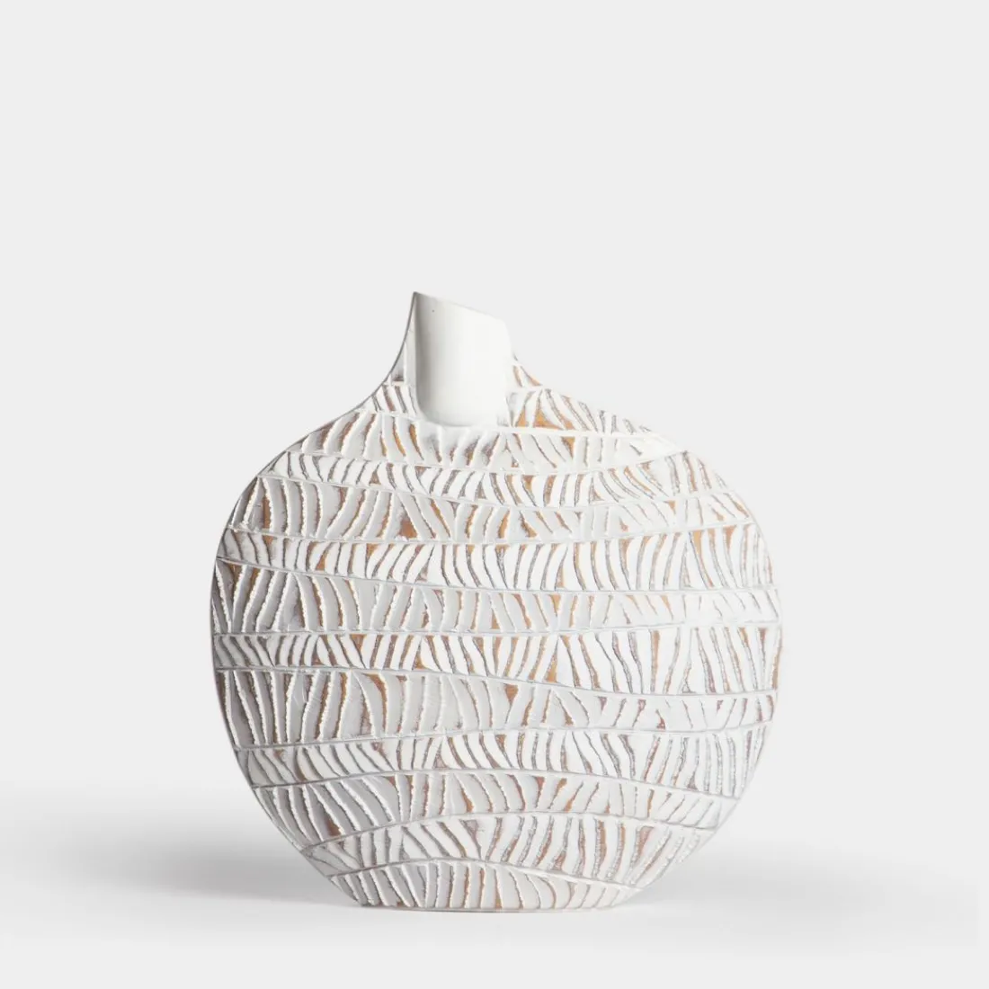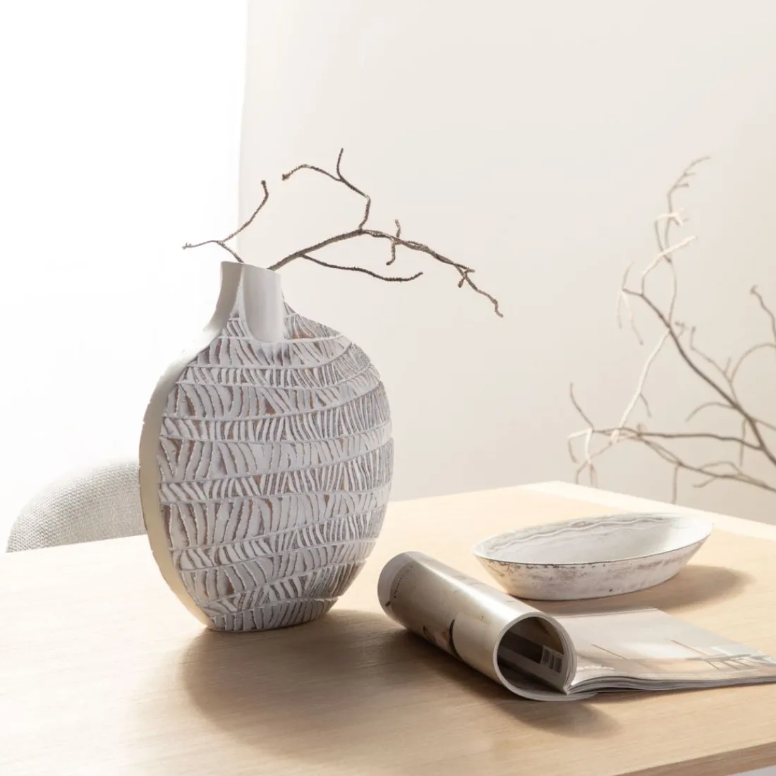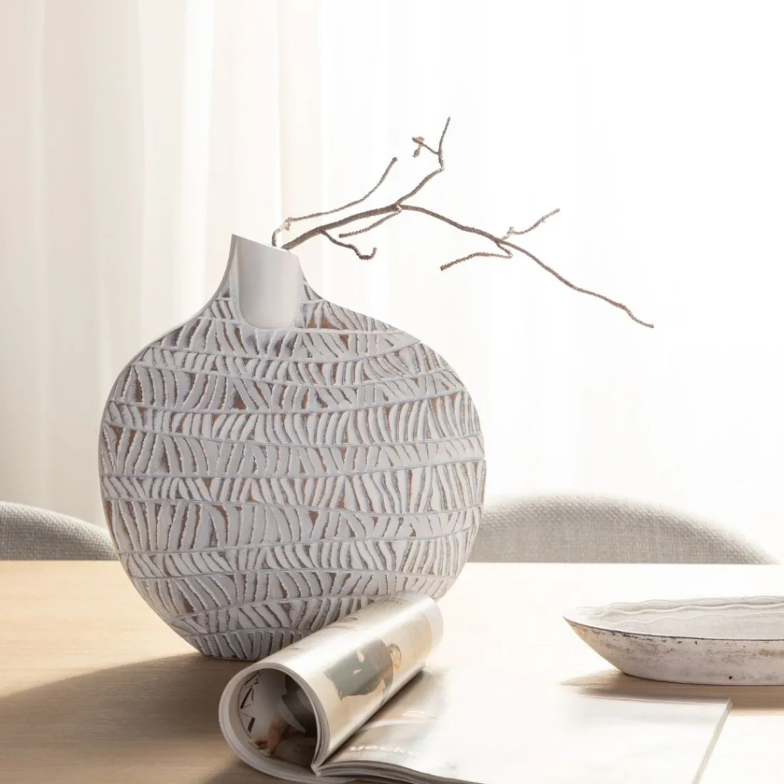 El jarrón de resina Wama blanco aporta carácter a cualquier salón, recibidor o dormitorio. Su forma irregular hace que no pase desapercibido y vista cualquier espacio. No te lo pienses más y hazte con este jarrón.