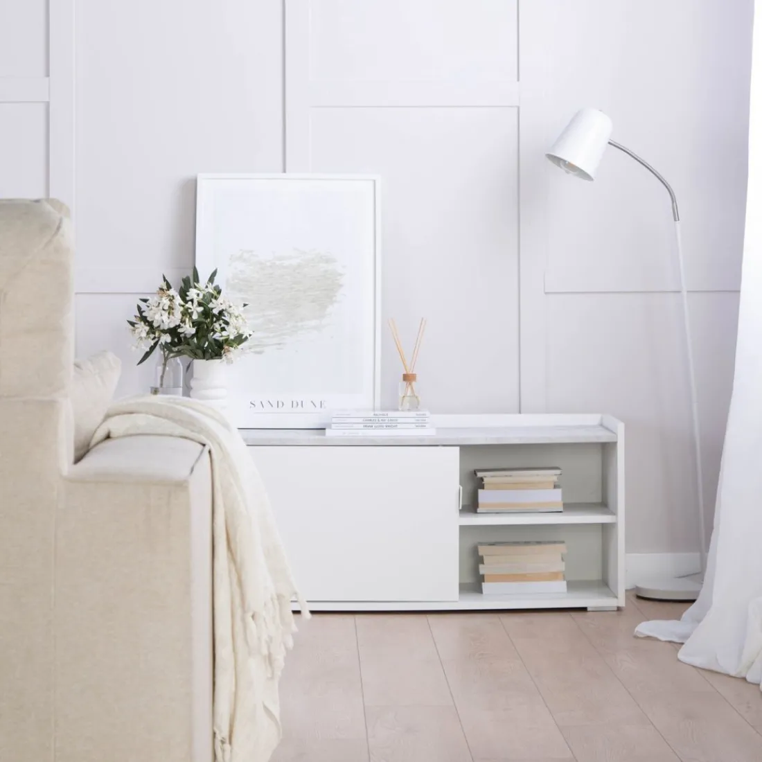 La lámpara de pie Kiva es una luminaria de estilo nórdico fabricada en metal que asegura una distribución uniforme de la luz. Su color blanco garantiza que se pueda combinar con cualquier mueble y elemento de tu hogar. Y si la prefieres en gris también la tienes disponible.No incluye bombilla.