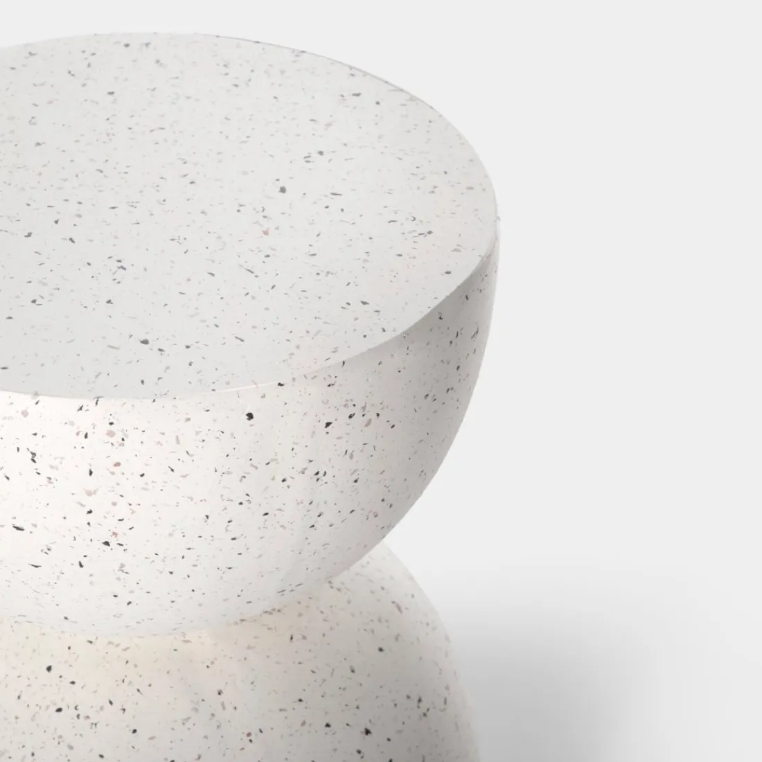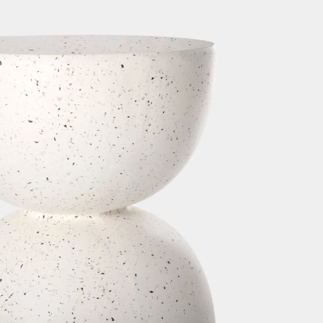 La mesa auxiliar Argos, fabricada en fibra de magnesio con un acabado que simula el terrazo, es ideal para interiores y exteriores. Su diseño orgánico y minimalista se adapta a cualquier espacio, ya sea como mesa de café, soporte para plantas o pieza decorativa. Ligera, resistente y fácil de mantener, aporta un toque contemporáneo a tu hogar.