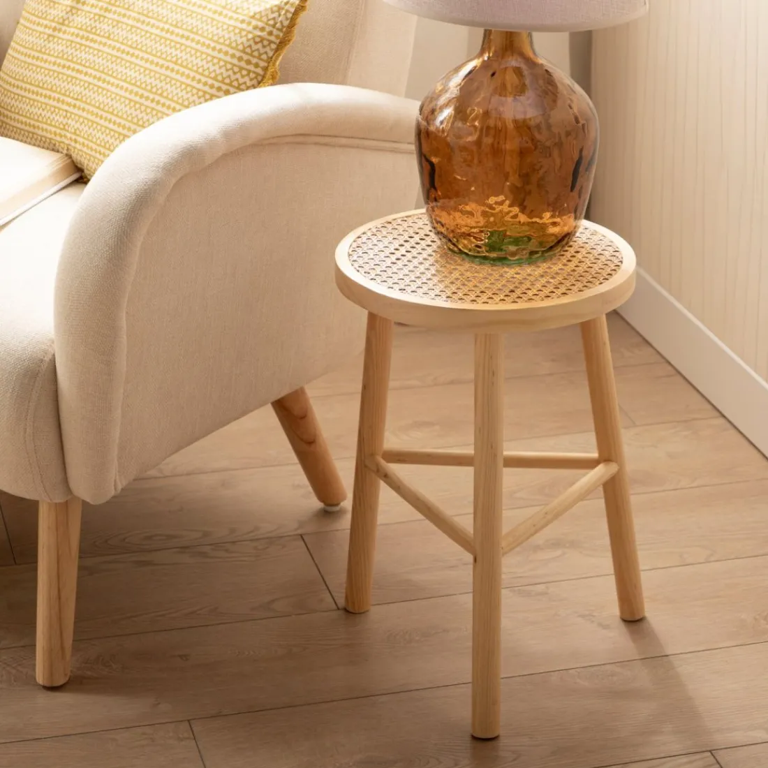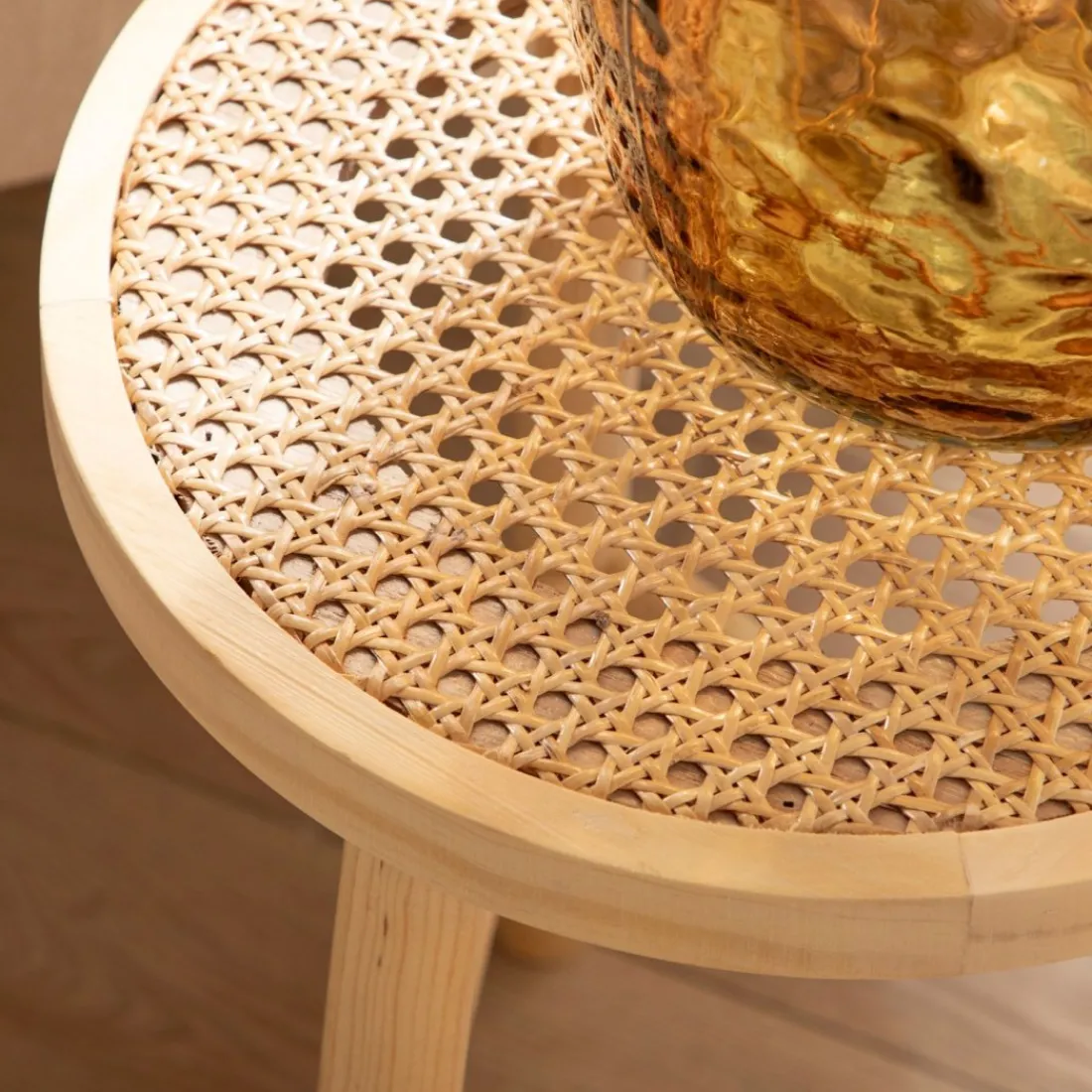Dale un toque natural a tu hogar con la mesa auxiliar Quo, elaborada en madera de pino y ratán natural. Su diseño combina la calidez de la madera con la textura única del ratán para crear un ambiente acogedor y elegante. Quo ofrece una superficie estable y funcional para colocar tus objetos decorativos o disfrutar de un momento de relax.