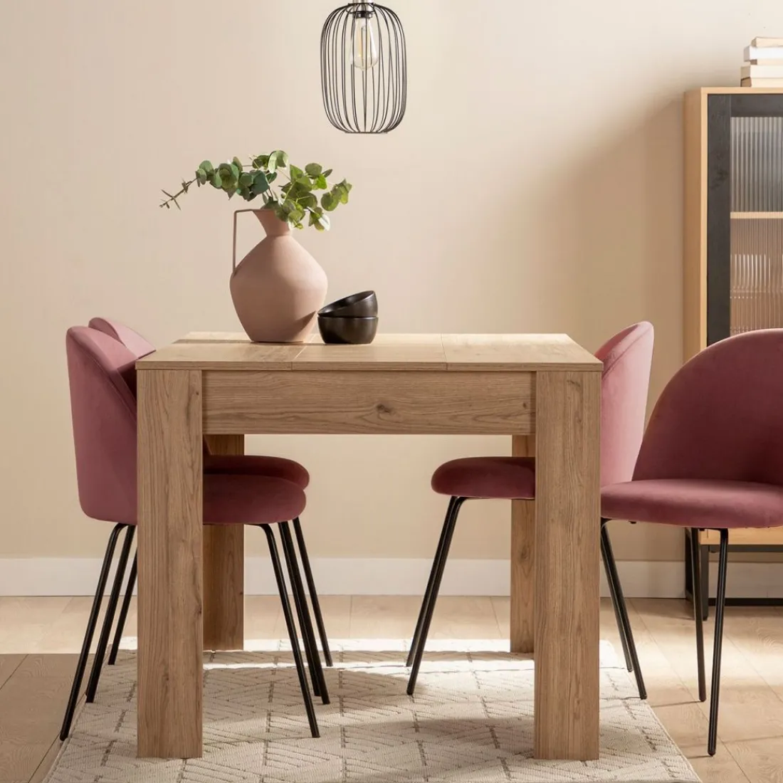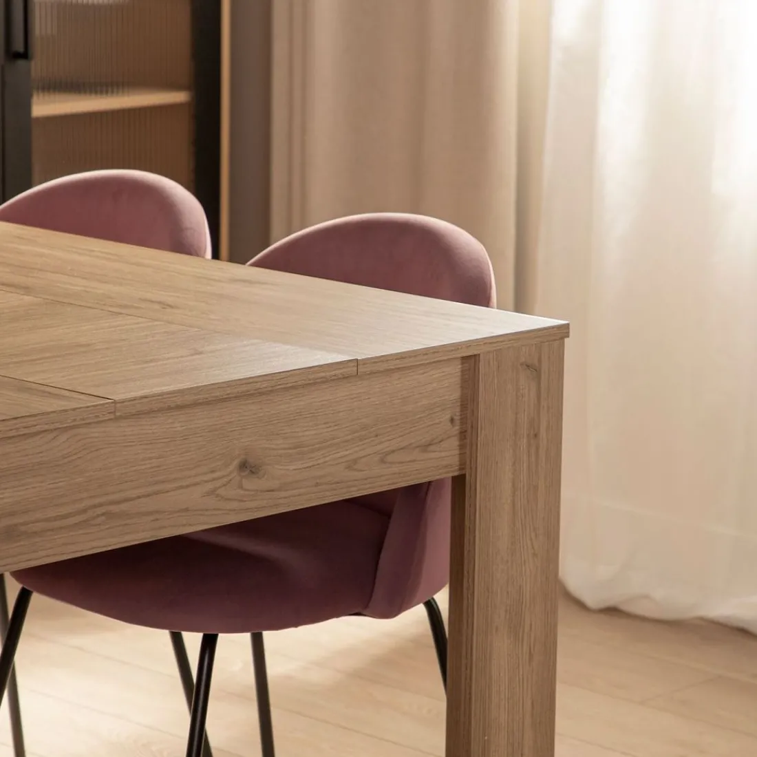 La mesa de comedor extensible Selin será el centro de todas las miradas cuando tengas invitados en casa. Se trata de una mesa muy funcional puesto que se convierte en extensible permitiendo una capacidad de hasta 8 comensales. Está disponible en dos acabados , natural y blanco , que combinan con cualquier tipo de ambiente que tengas en casa.