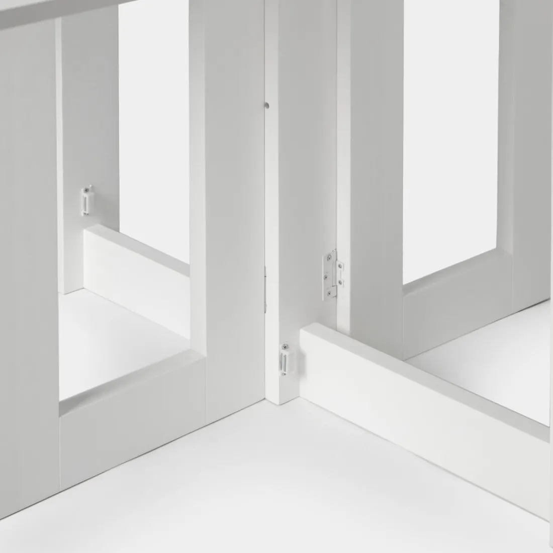 La mesa plegable rectangular blanca Anika es la mesa ideal para espacios pequeños, ya que cuenta con un sistema que permite aprovechar al máximo el espacio. Puedes tenerla totalmente plegada a modo de consola, a mitad desplegar a modo de mesa compacta para 3 personas o completamente abierta a modo de mesa para 6 personas. Incluye dos tiradores para facilitar su manipulación, pero si quieres una mesa más minimalista puedes optar por no colocarlos.