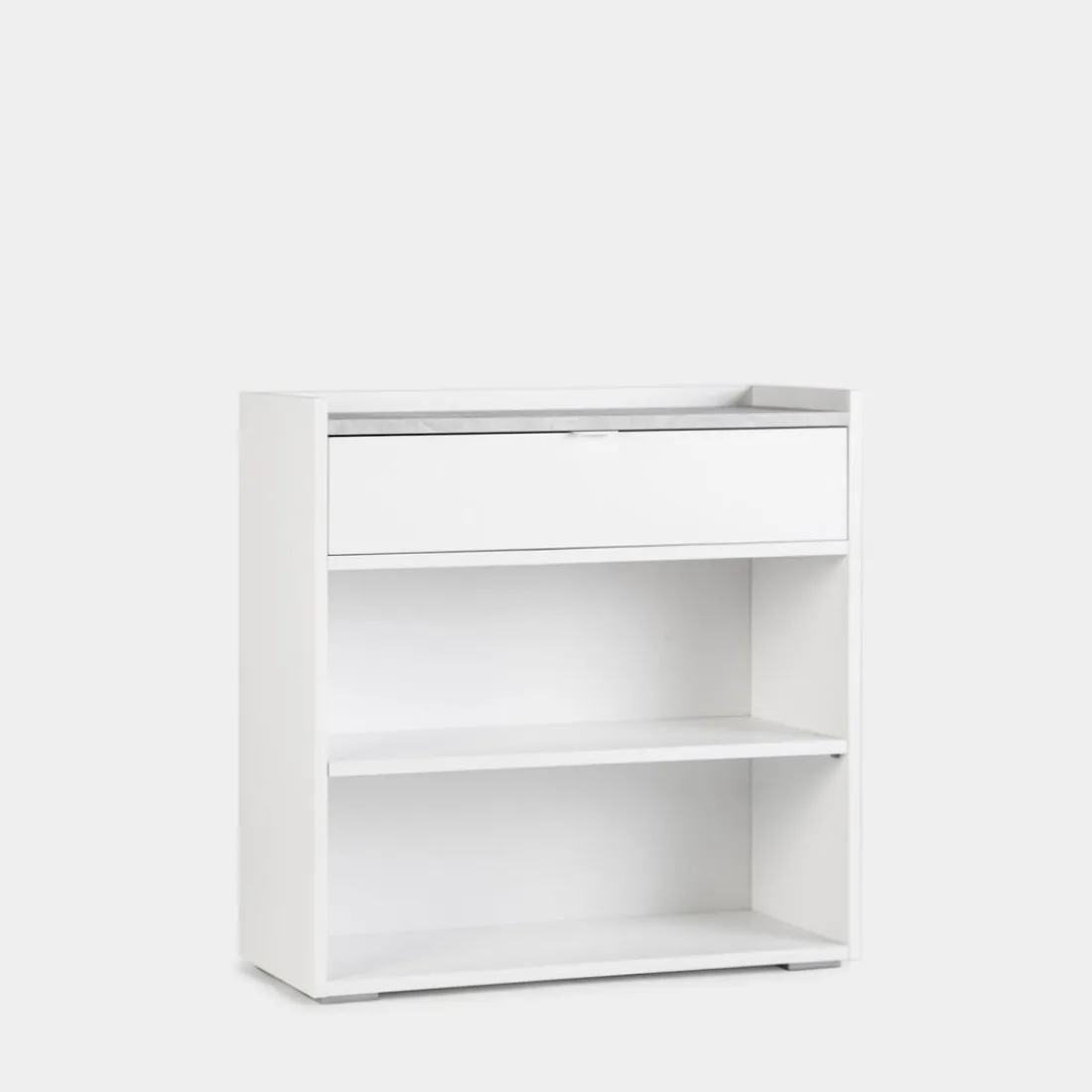 La consola Siena, es la elegancia en estado puro.Es una pieza de diseño propio creada por el equipo de Klast Home.De estilo nórdico este mueble recibidor dispone de un cajón superior dónde guardar aquello que desees, como las llaves o la correspondencia.Además dispone de una balda ideal para poder almacenar tus accesorios o libros. Tiene mucha capacidad.Cuando hablamos de Siena, hablamos de diseño en mayúsculas, una de sus características más destacables, es su sobre con efecto marmolado, sin duda un detalle que derrocha estilo. Visita el resto de la colección y completa el look.Para mayor estabilidad del mueble, aconsejamos su anclaje a pared.