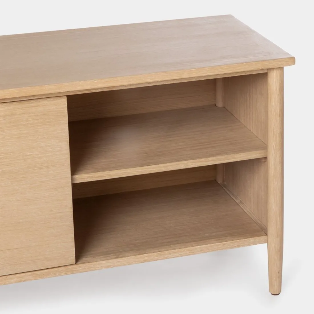 Realza tu salón con el mueble TV en chapa de pino y madera de abedul Kenan. Sus dos puertas y estantes ofrecen un amplio espacio de almacenamiento para organizar tus dispositivos electrónicos y otros accesorios multimedia. Su diseño limpio y minimalista, característico del estilo nórdico, agrega un toque de calidez y modernidad a cualquier ambiente. Disponible en varios acabados.