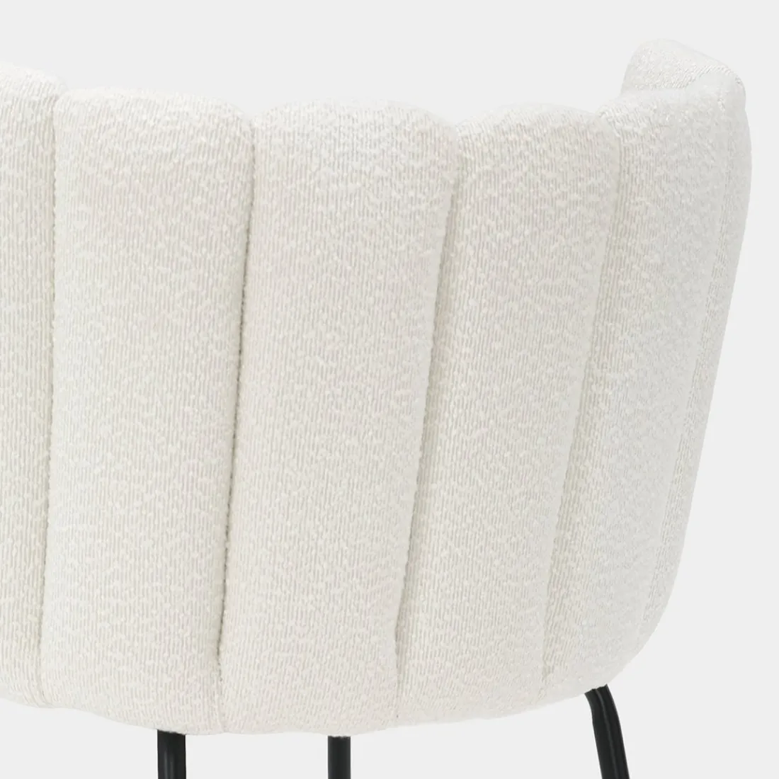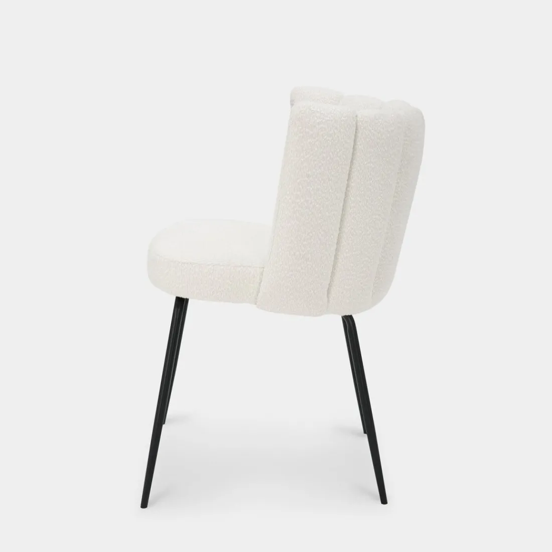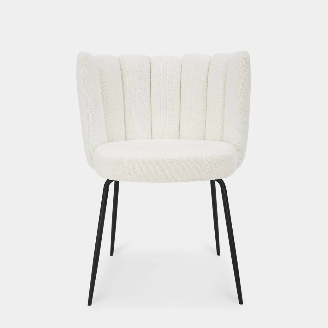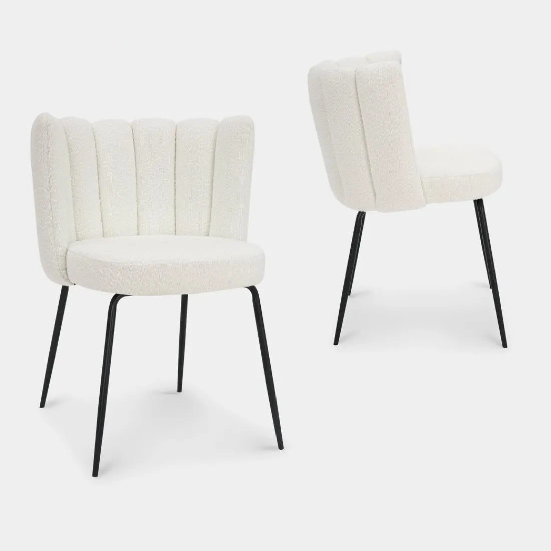 La silla de comedor Enis destaca por su exclusivo respaldo en forma de flor, que aporta un toque de originalidad y elegancia. Tapizada en suave bouclé blanco, combina a la perfección con sus patas negras, creando un contraste moderno y sofisticado. Este diseño único no solo es estéticamente atractivo, sino también cómodo, ideal para añadir un toque de distinción a tu comedor o sala de estar.