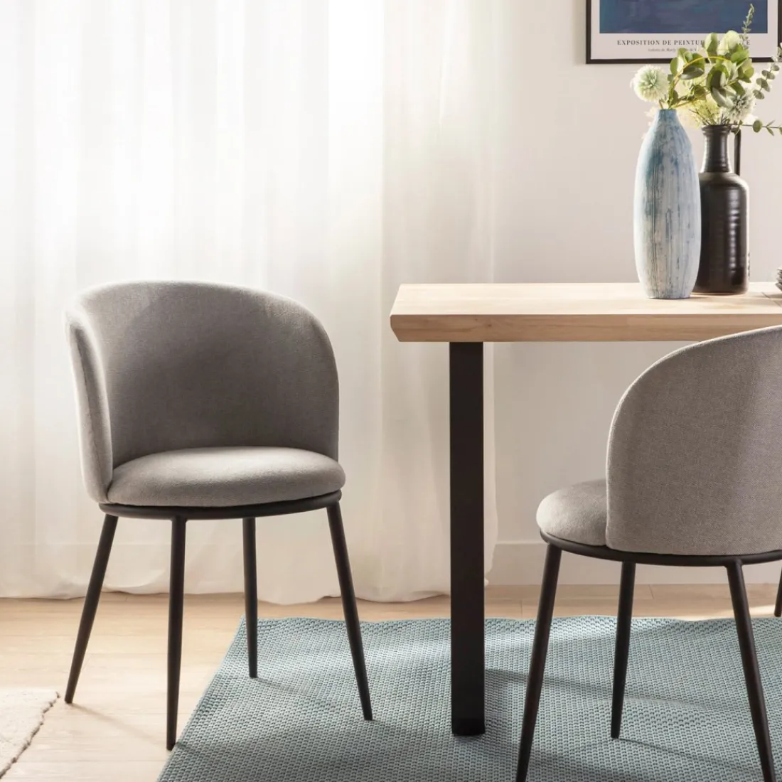 ¡Aprovéchate de este pack! La silla de comedor Nolan tapizada en gris con pata metálica negra es la pieza ideal para completar la decoración de tu hogar. Su respaldo curvado envuelve a la perfección la espalda y aporta una gran sensación de confort y comodidad. Está disponible en una amplia gama de tonos, escoge el que más te guste y crea un espacio lleno de encanto.