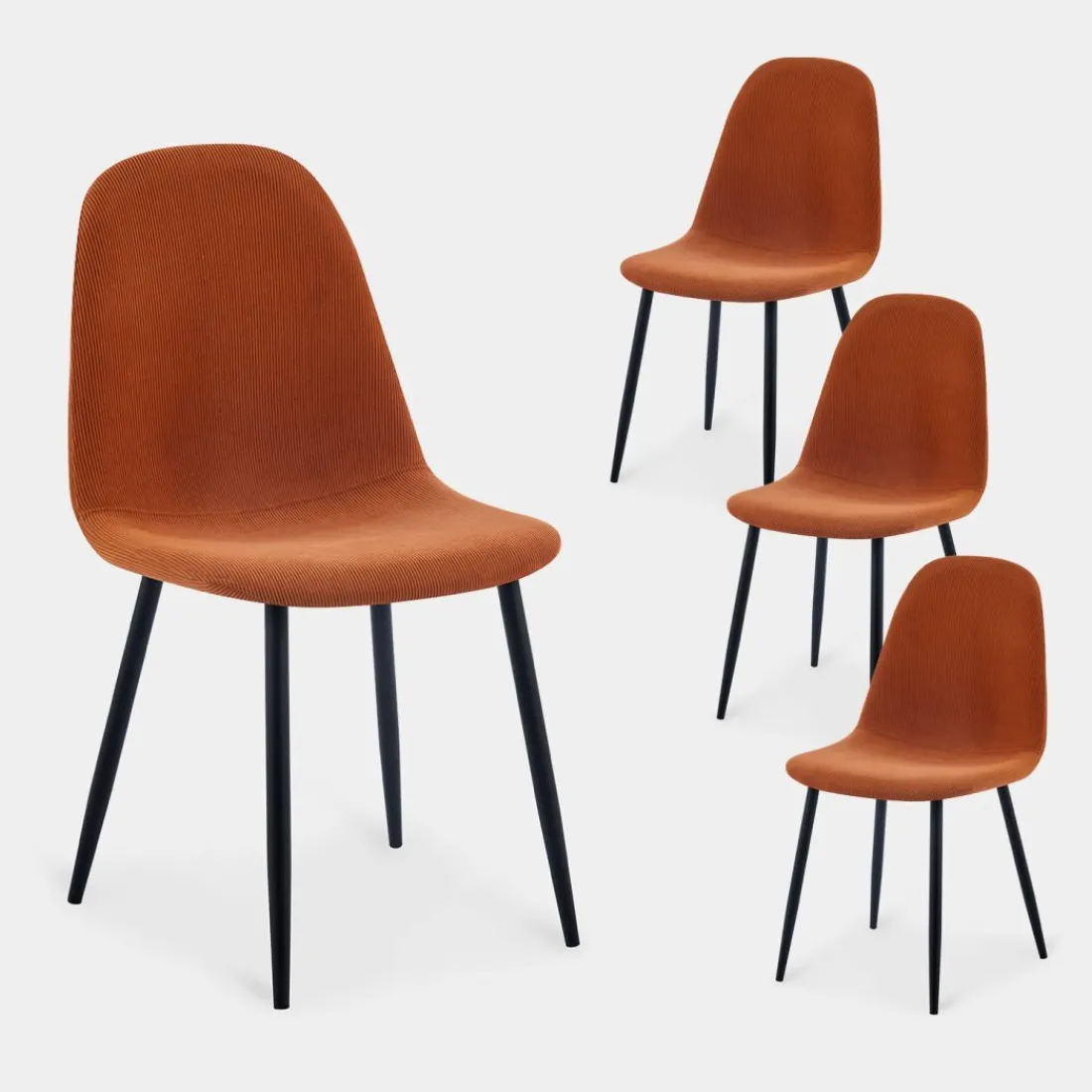 ¡Aprovéchate de este pack! La silla de comedor Elia, tapizada en sofisticada micropana terracota y con patas metálicas negras, es la elección perfecta para completar tu hogar. Su diseño sencillo y minimalista aporta un toque de elegancia a cualquier espacio. Gracias a su ergonomía, es ideal tanto para el comedor como para el escritorio, garantizando comodidad y estilo. Disponible en una variedad de tapizados, escoge el que mejor encaje con tu estilo.