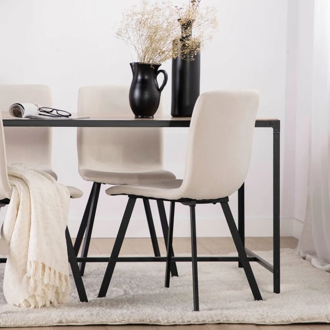 ¡Aprovéchate de este pack! La silla de comedor Maia en tapizado beige con pata metálica negra es capaz de transformar por completo la decoración de tu comedor aportando un extra de elegancia y sofisticación. Un diseño realizado para adaptarse a nuestro cuerpo, con un respaldo y asiento en una única pieza totalmente ergonómica. Una silla de comedor de estilo contemporáneo que se ha convertido en todo un icono de modernidad y actualidad gracias a sus innovadoras líneas.