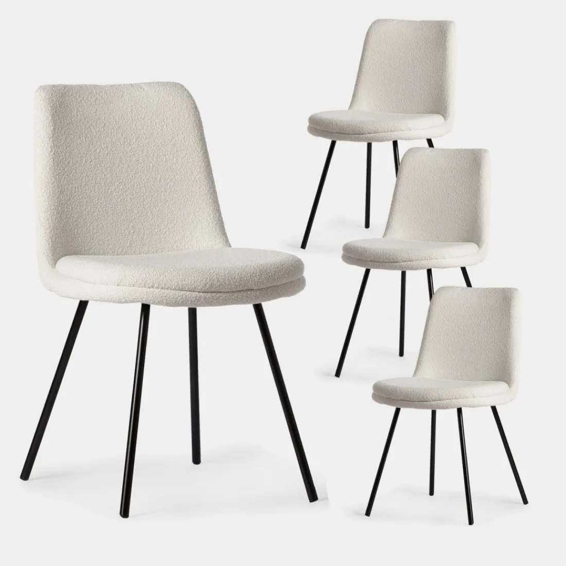 ¡Aprovéchate de este pack! Añade un toque de estilo y confort a tu comedor con la silla de comedor Tera. Su suave tapizado en bouclé beige y sus patas metálicas negras ofrecen un equilibrio perfecto entre elegancia y comodidad. Disponible en varios tapizados, elige el que mejor se adapte a tu estilo decorativo.